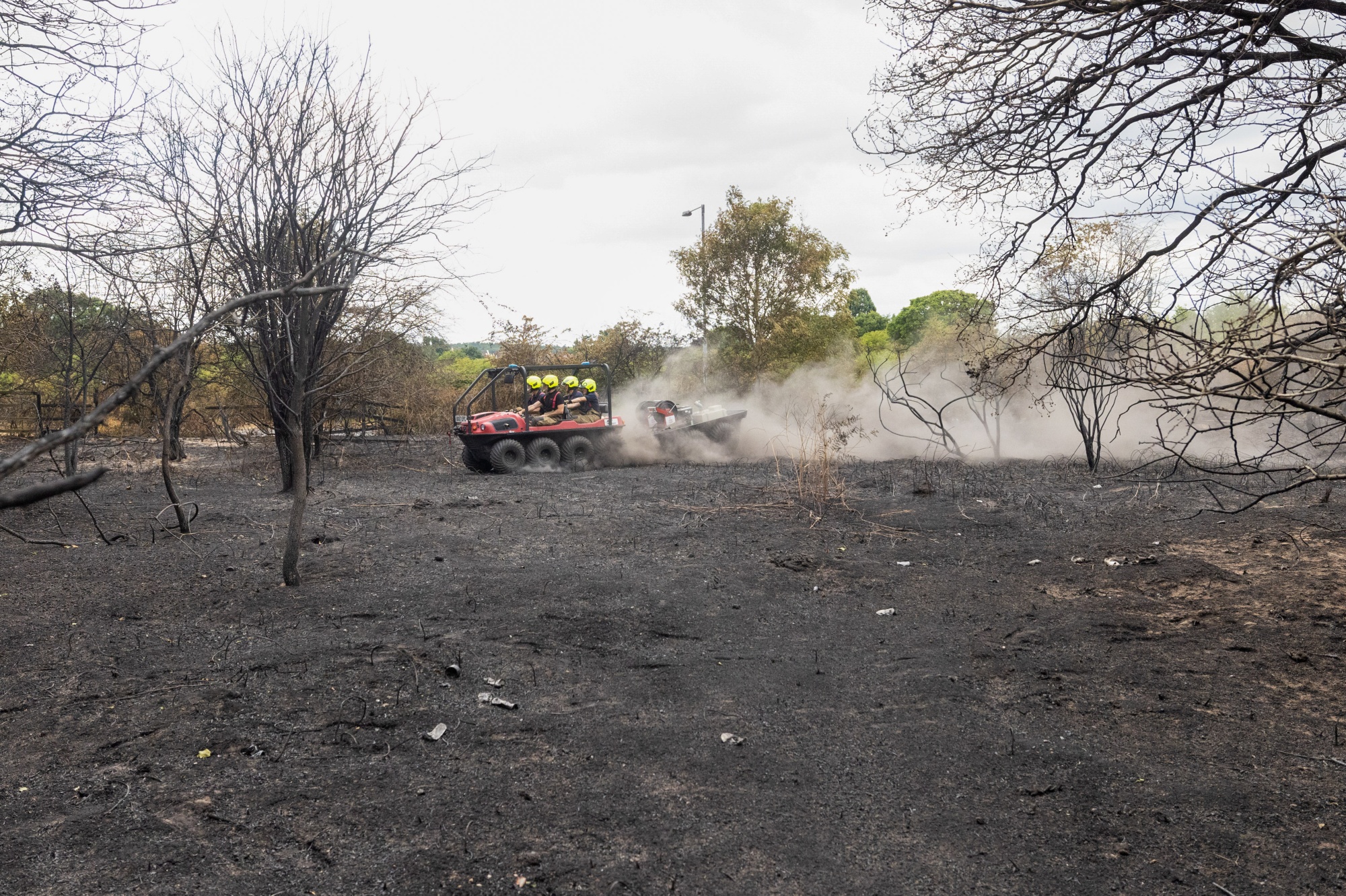 达特福德希斯上的消防员在2022年7月热浪期间的一场大火后。