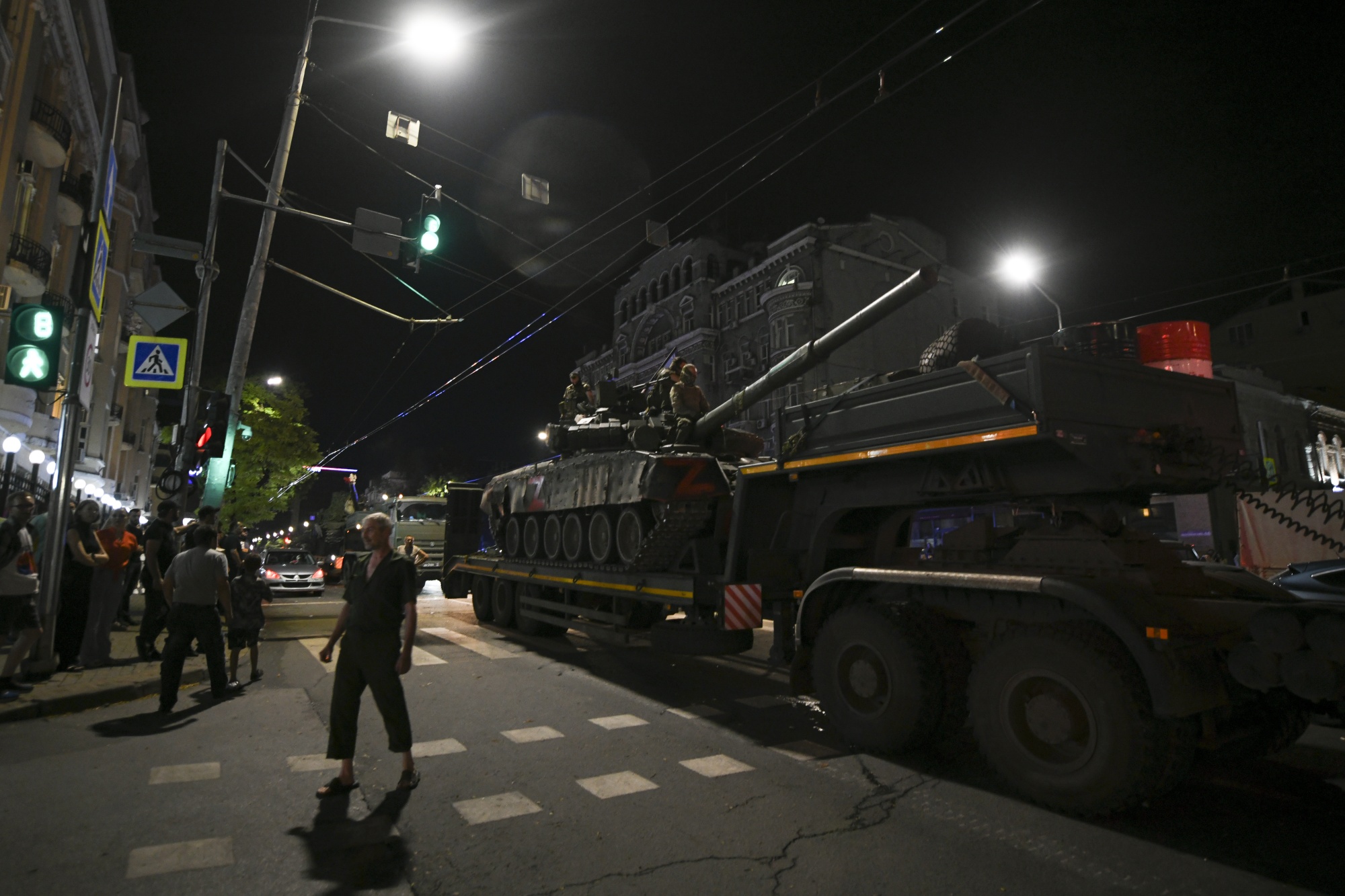 罗斯托夫-顿河街头的瓦格纳坦克和车辆,2023年6月24日。