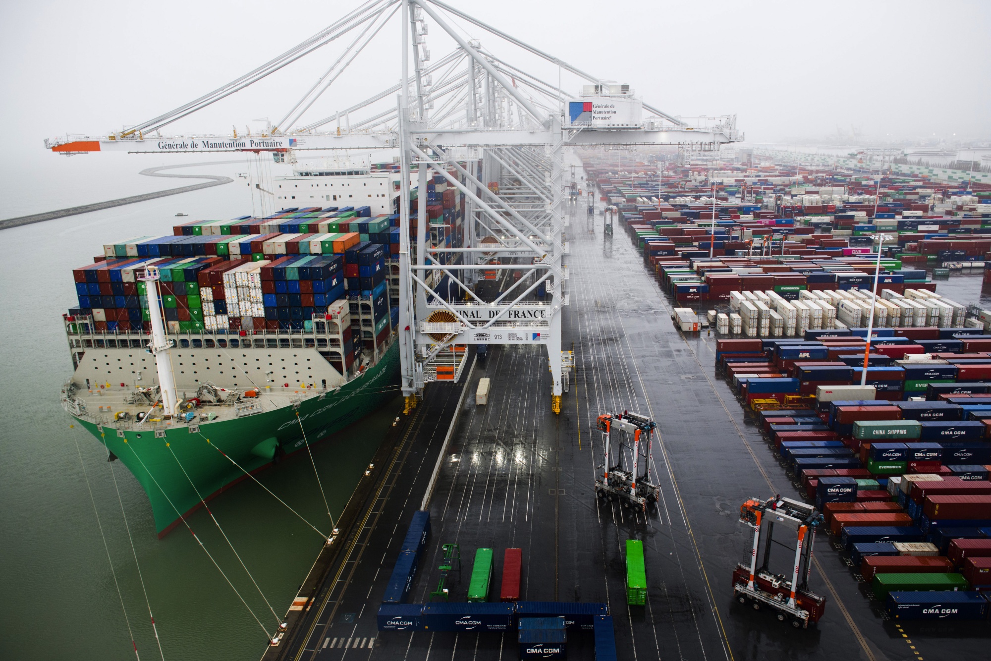 法国勒阿弗尔港的一艘LNG动力集装箱船。