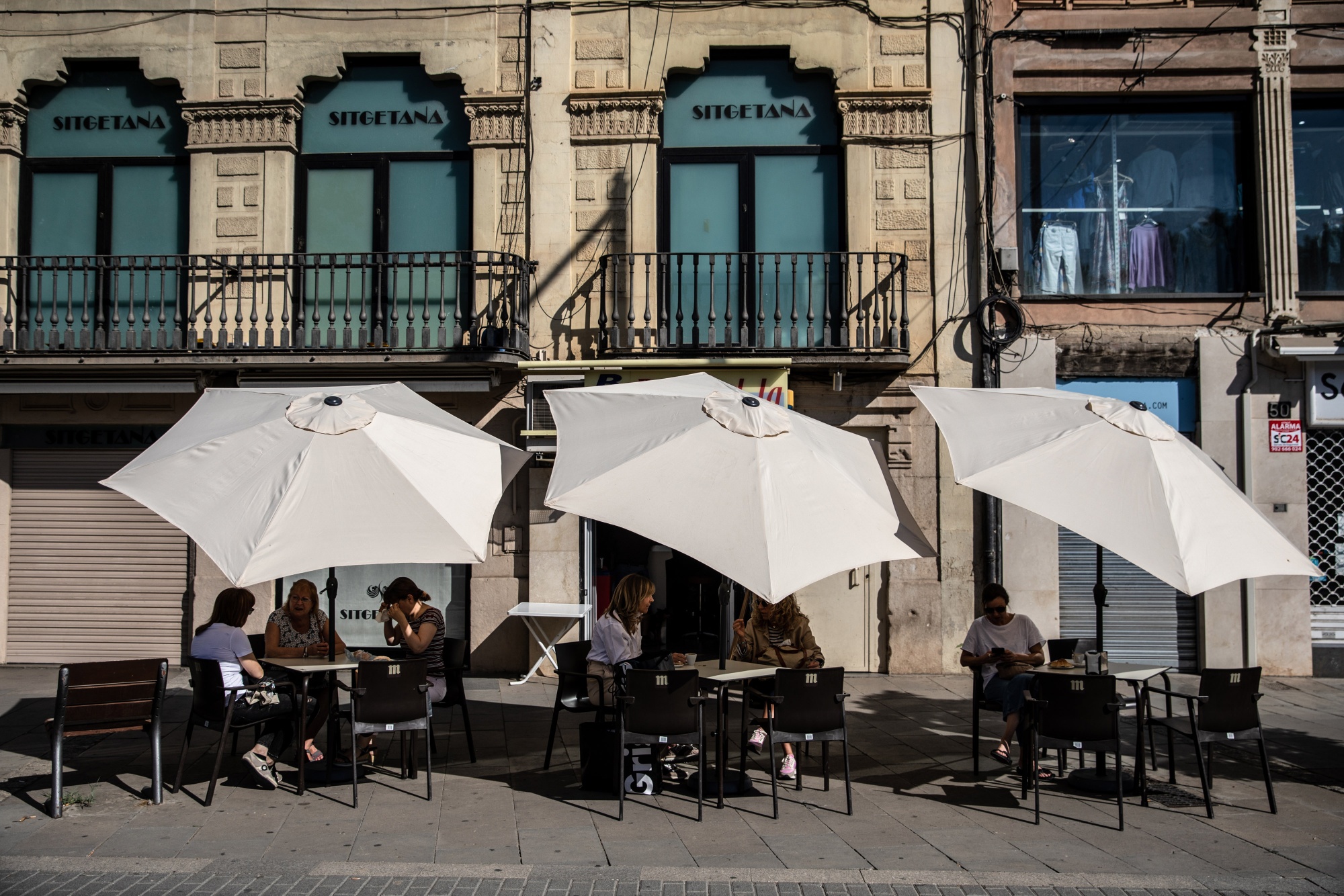 顾客在西班牙的莱里达市一家咖啡馆避阳。