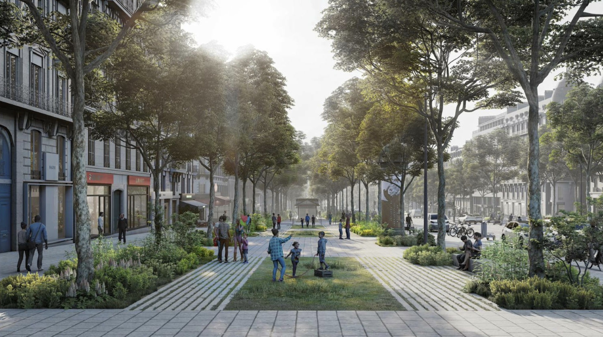 这些人行道和雨水花园将填补曾经由交通占据的空间。照片:©PCA-Stream到2030年,情况将发生改变。当Philippe Chambaretta建筑师设计的方案实施完成时,为汽车保留的空间将减少大约一半。