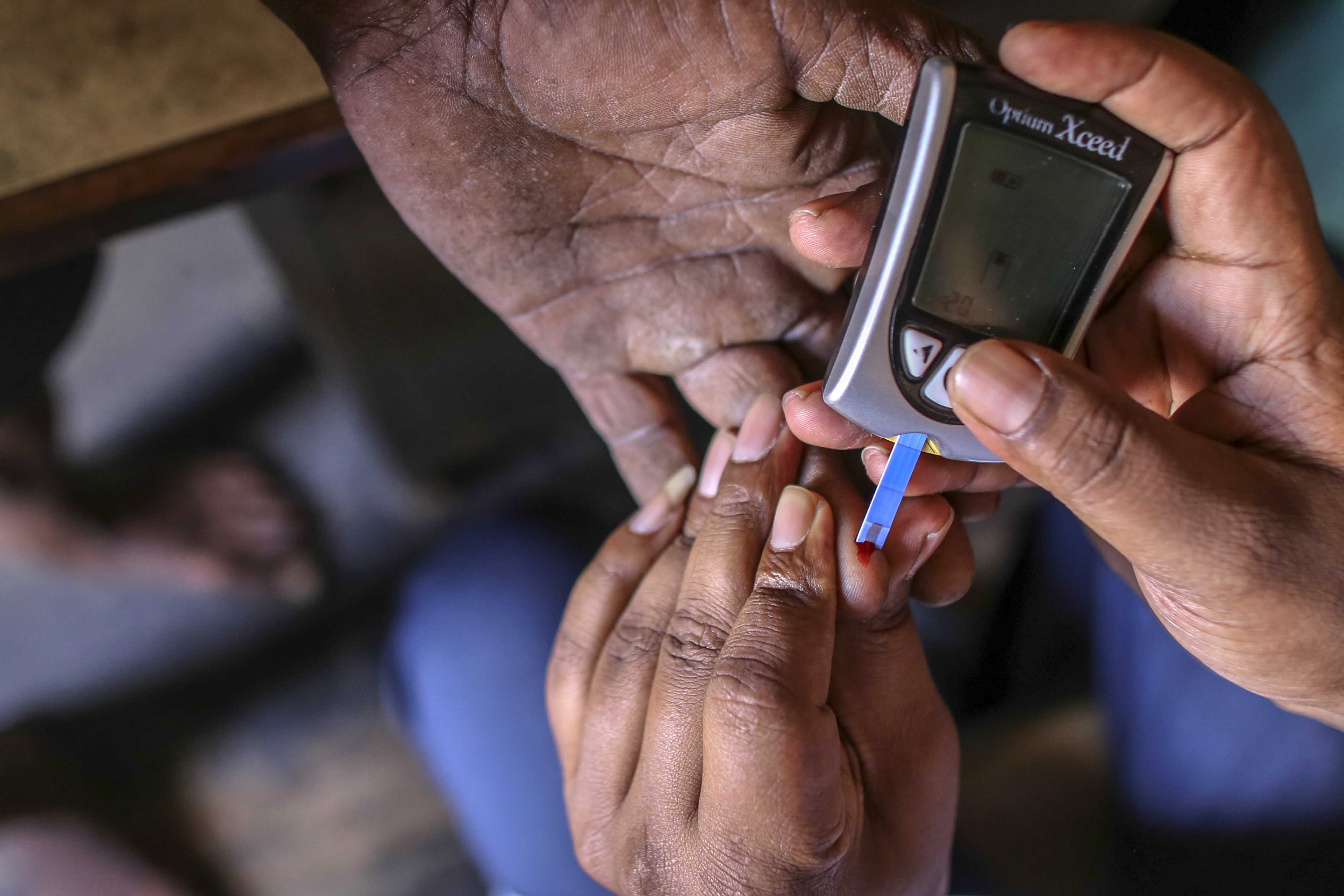 在印度班加罗尔郊外,一名患者正在接受血糖检查。