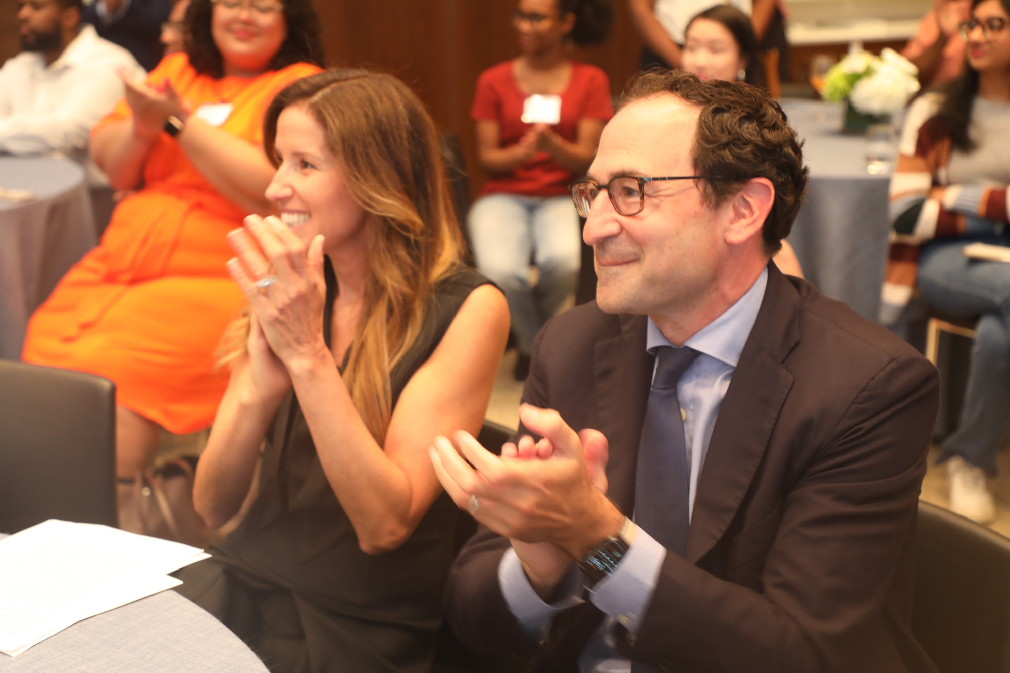 这11名刚刚高中毕业的学生星期一聚集在Blackstone的活动空间,享用迷你塔可和木瓜冰茶。他们与格雷斯、Blackstone的维尔登·佩里、UNCF主席迈克尔·洛马克斯和《精华》杂志联合创始人埃德·刘易斯交流。