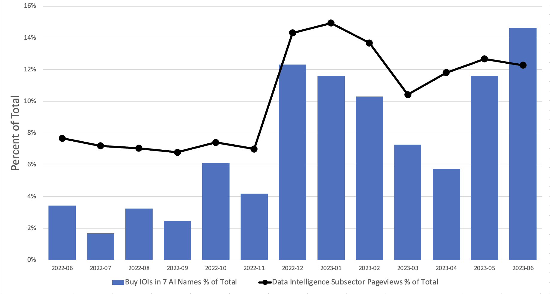 Forge Global Holdings Inc.在过去一年中看到其平台上对人工智能公司的需求增加,其中包括微软公司在一月份对OpenAI的投资以及Anthropic的一轮融资是主要推动因素之一。数据显示,六月份,包括OpenAI在内的七家人工智能公司的购买兴趣达到了该时期的最高水平。