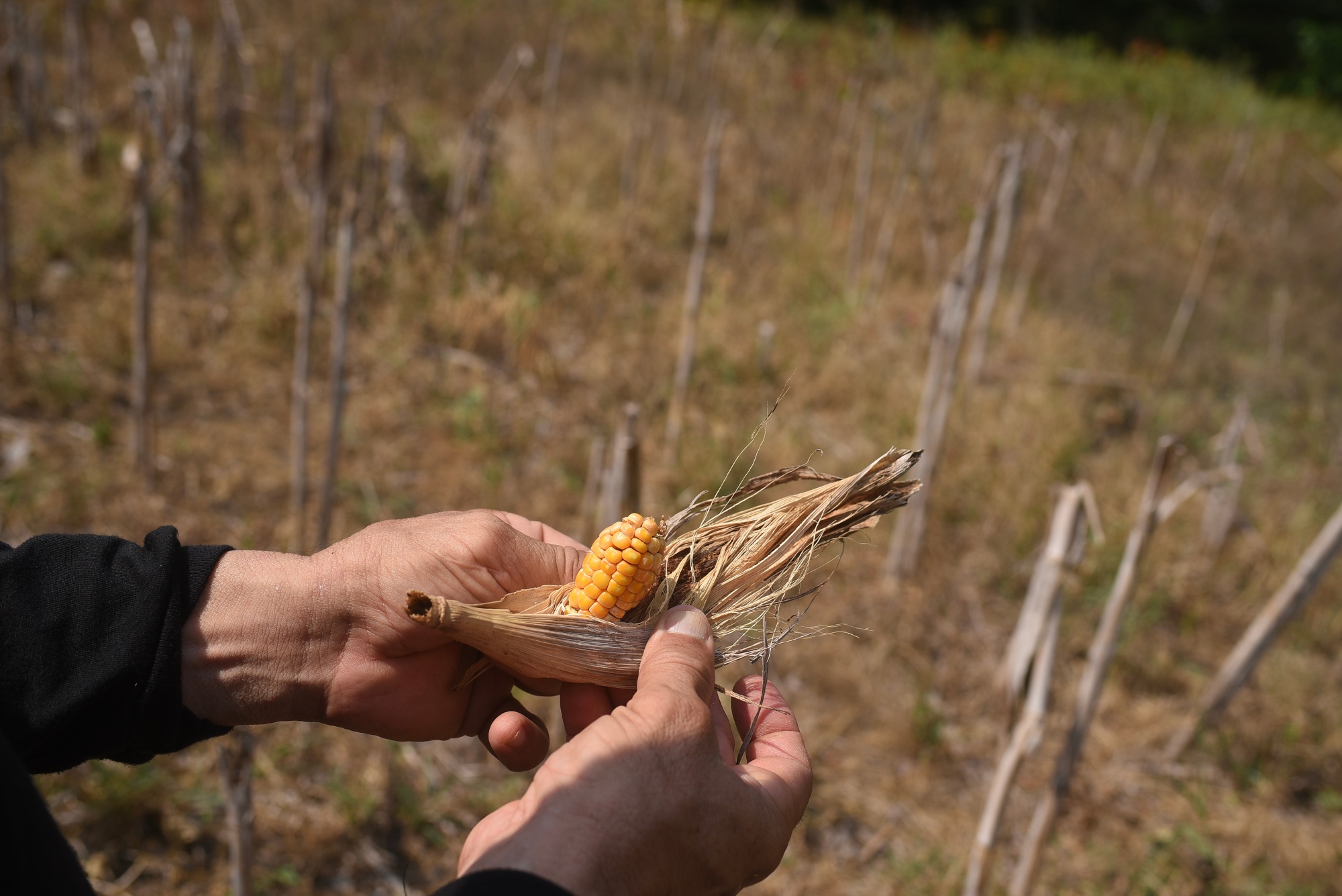 一位农民在墨西哥韦拉克鲁斯州安赫尔·R·卡巴达(Angel R. Cabada)的热浪中拿着一根畸形的玉米穗,日期为2023年6月24日星期六。