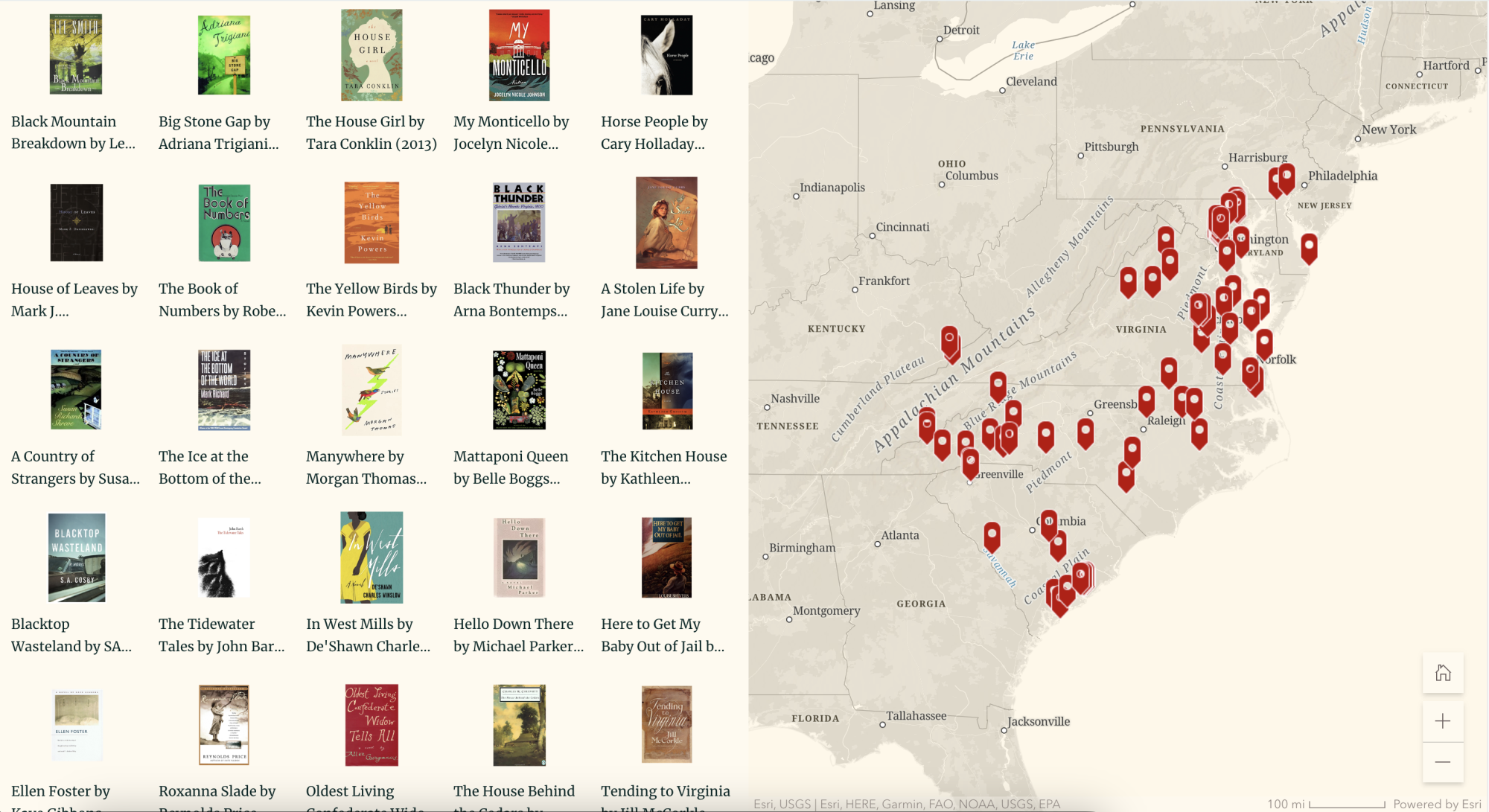 Straight的“1001部小说:美国图书馆”截图。来源:Susan Straight/ESRI数据库中的一些小说设定在虚构的地点,但仍然根植于美国的实际地区。在这些情况下,Straight联系了作者,以获取他们在写作时所想的地点。在其他情况下,作者设定书中核心的地点已经不存在,或者发生了很大变化,使得Straight很难追踪。为了确定Kelly Jo Ford的*《歪曲的哈利路亚》*发生的地点,Straight给她发了电子邮件。“她给我发送了一个水泥板的GIS位置,”Straight说,“那是她祖母在俄克拉荷马州大理石泉的房子。房子已经不存在了,只剩下Google StreetView上的水泥板,她说,‘这就是我书中的核心所在。’”
