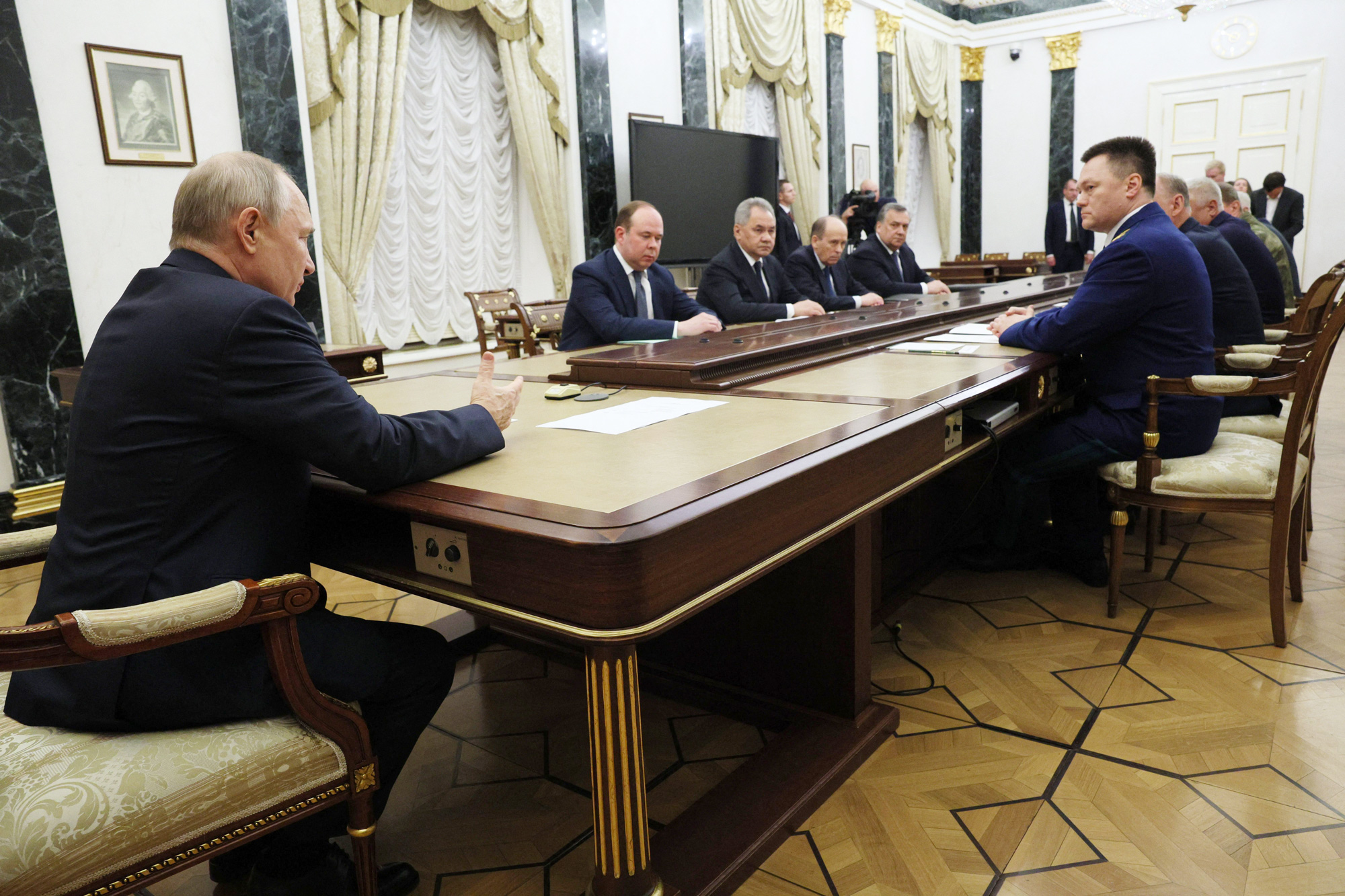 弗拉基米尔·普京于6月26日与他的高级安全官员会面。摄影师:加夫里尔·格里戈罗夫/法新社/盖蒂图片社普京声称24小时叛乱迅速结束显示俄罗斯人团结在他身后的说法被事实证明是错误的,因为有视频显示,仰慕的人群在普里戈津和他的战士们撤离他们占领的南方城市时欢呼雀跃。