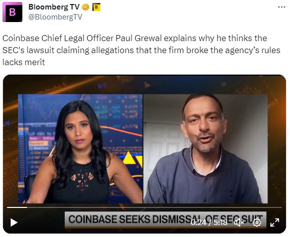 今天在彭博电视台的权力平衡节目中,Joe Mathieu和Annmarie Hordern将于下午5点讨论最高法院裁定在大学招生中不得使用种族的问题,与德克萨斯大学法学院联邦法院专家Steve Vladeck一起。在彭博电视台早些时候,Coinbase的首席法律官Paul Grewal回应了证监会对这家加密交易所提起的诉讼。