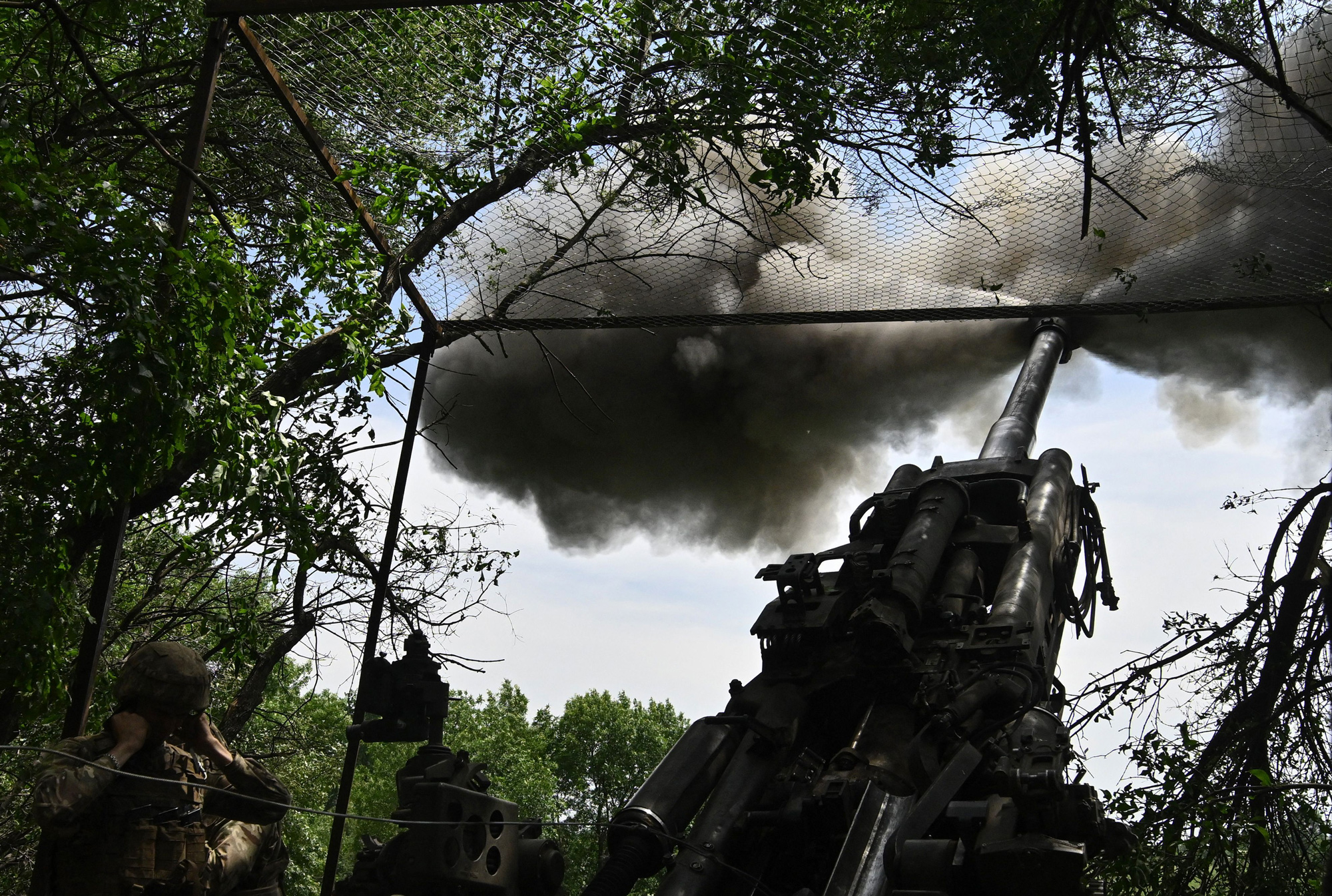 乌克兰炮火朝着乌克兰Avdiivka附近的俄罗斯阵地开火。