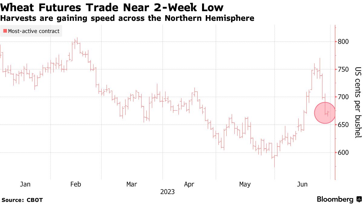 小麦期货价格保持在两周低位,随着几个主要出口国的收获增加,短期供应得到支撑。