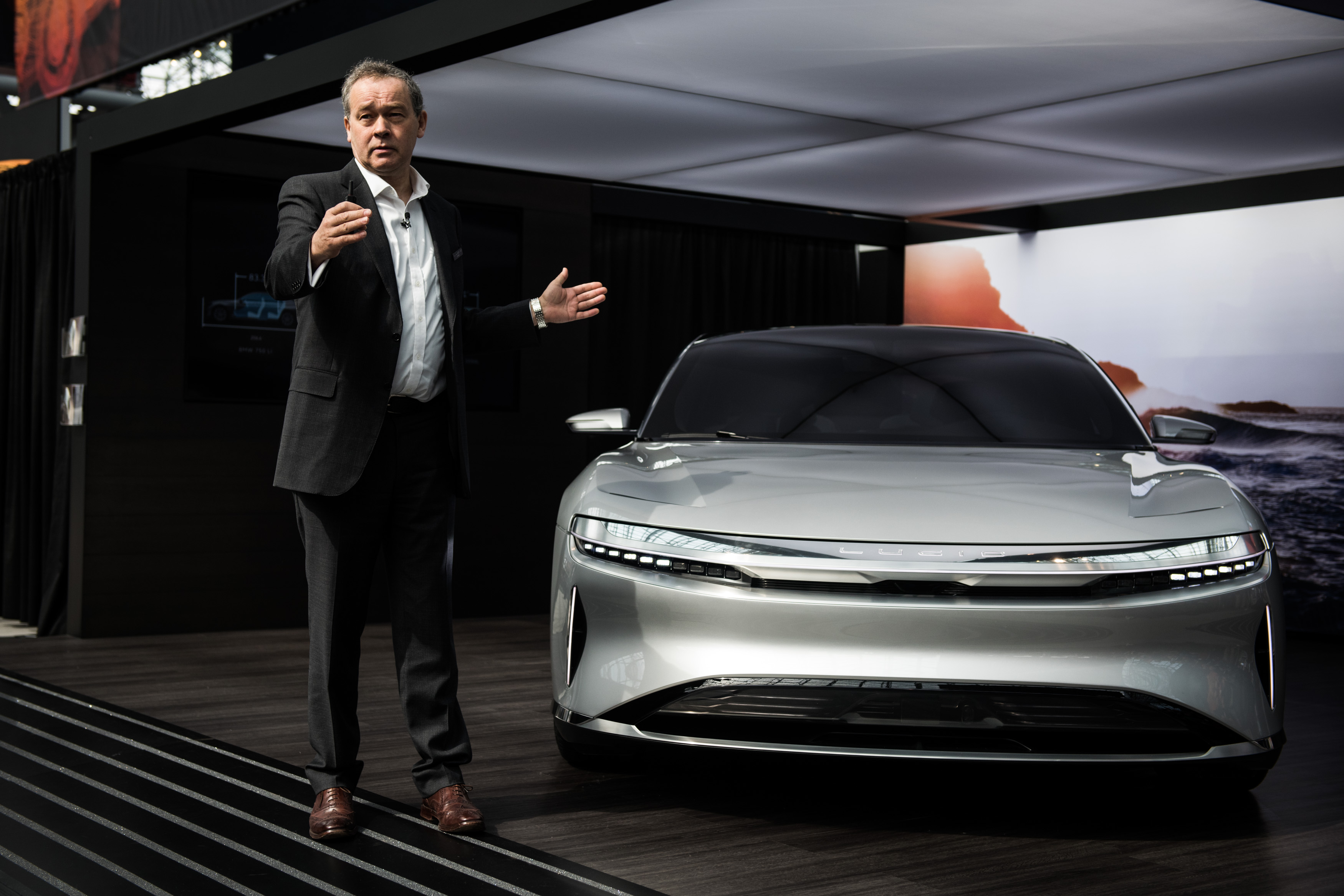 Lucid CEO Peter Rawlinson with a Lucid Air prototype.