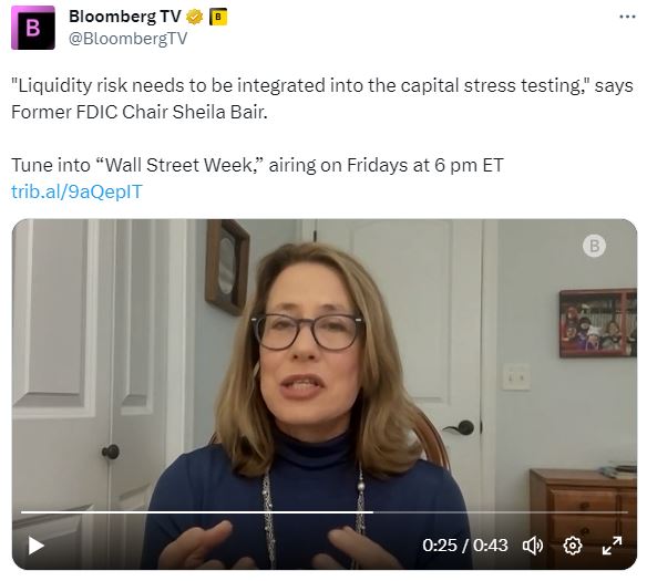 今天在彭博电视台的 权力平衡下午5点*,* 主持人乔·马修和安玛丽·霍登与宪法问责中心总裁伊丽莎白·维德拉讨论本周最高法院的裁决。稍后在彭博电视台,前美国联邦存款保险公司主席希拉·贝尔谈论对银行进行压力测试。