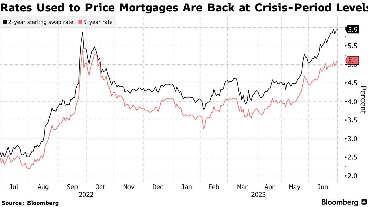 由于英格兰银行加息以应对令人意外的通胀,借款人正面临着抵押贷款成本的急剧上升。投资者预计央行将不得不将利率提高到6%以上。