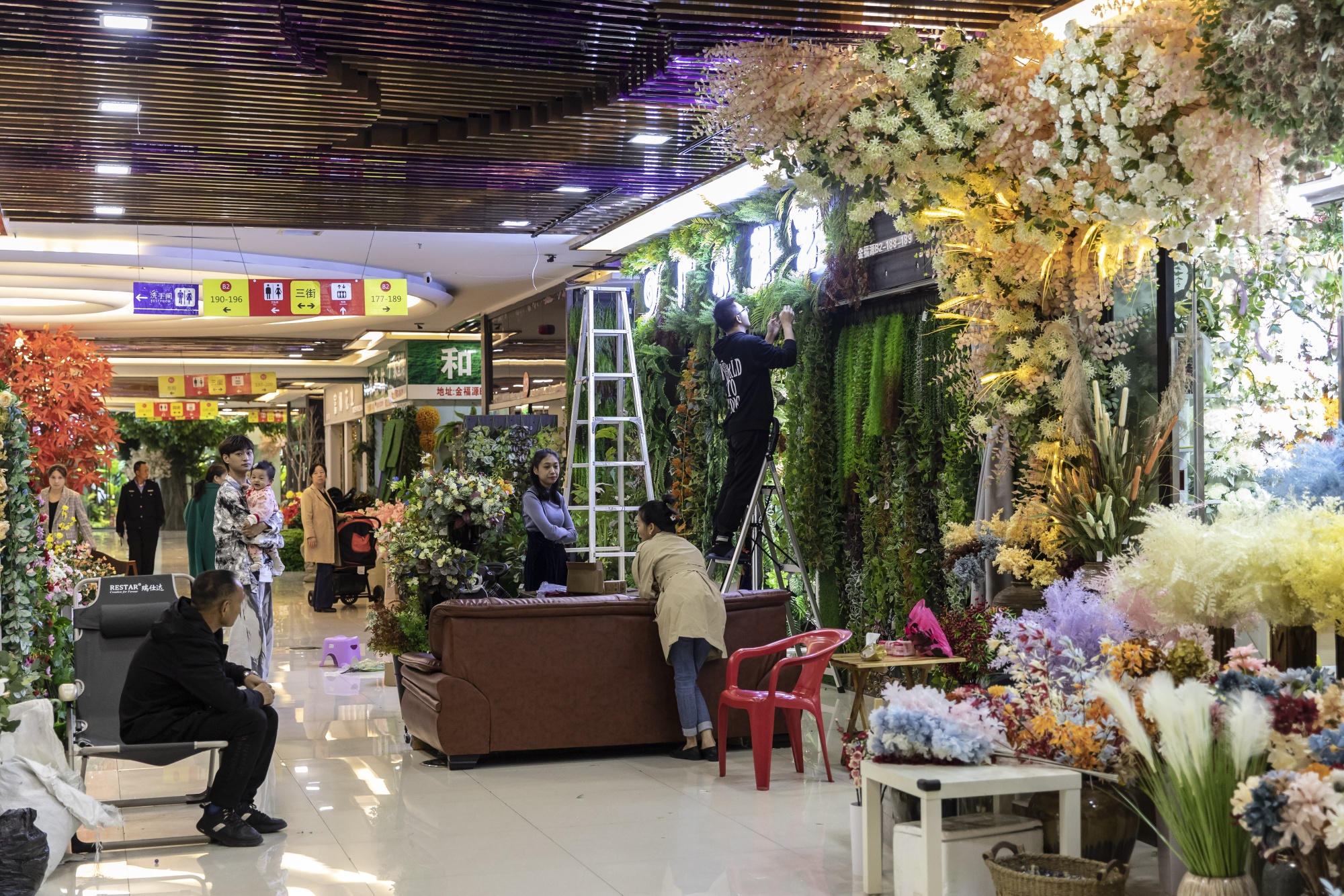 温温,一家塑料花生意的老板,这样总结了经济的阴霾:“我怀念每家批发市场的店铺门口都排着长队,顾客们试图涌入抢购产品的时光。”