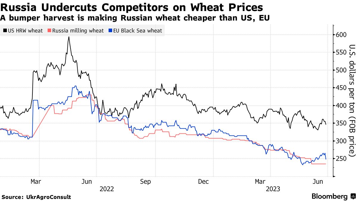 俄罗斯正寻求加强对世界小麦供应的控制 - 彭博社