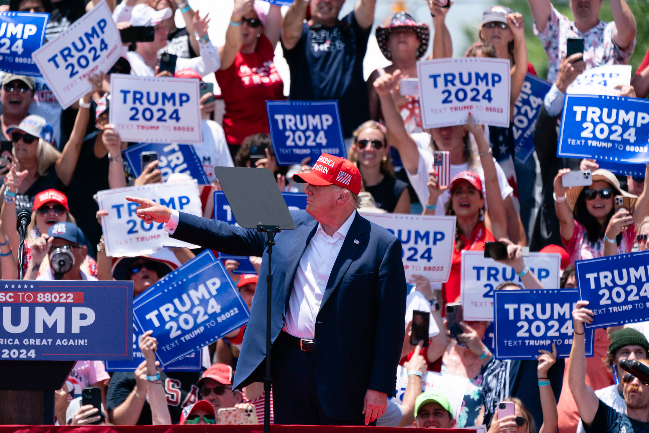 前总统特朗普在南卡罗来纳州皮肯斯的竞选活动中,7月1日。摄影师:伊莱贾·努维拉格/彭博社唐纳德·特朗普赞扬了终结大学入学平权行动和学生债务减免计划,以及限制LGBTQ保护的最高法院裁决,并吹捧自己在南卡罗来纳州竞选时安装法院保守派多数的角色。