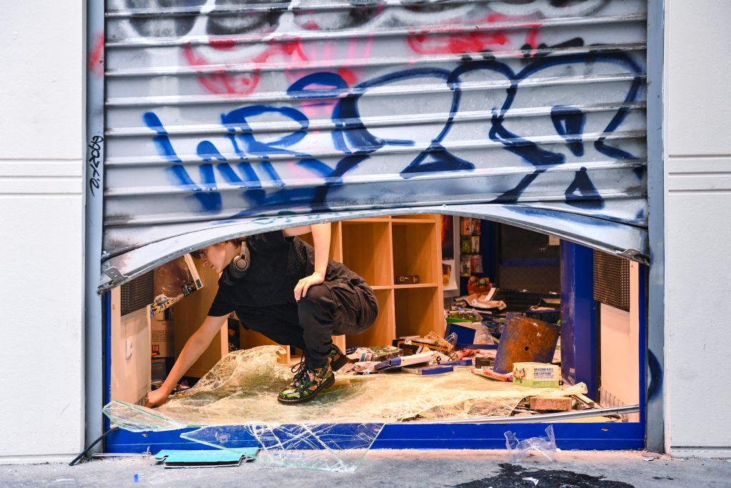 一名员工进入法国东南部里昂的一家被洗劫的商店。摄影师:奥利弗·沙西诺尔/法新社/盖蒂图片社