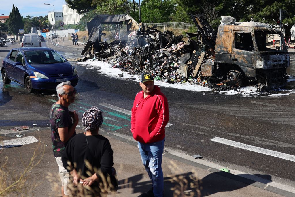 法国马赛北部一辆烧毁的卡车。摄影师:克莱门特·马胡多/法新社/盖蒂图片社17岁的纳赫尔在南特尔的葬礼上举行,他在一辆车内被近距离枪杀。社交媒体上发布的视频显示两名警察俯身靠近车辆,其中一名在司机启动车辆时开枪。当局尚未公布纳赫尔的姓氏。