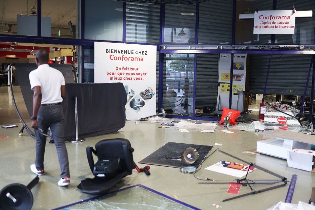 一家遭洗劫的Conforama商店,位于邦迪。摄影师:Charly Triballeau/AFP/Getty Images劳伦-弗朗克·利纳德,这名警官的律师告诉欧洲1电台,这名警察认为他“需要”开枪。