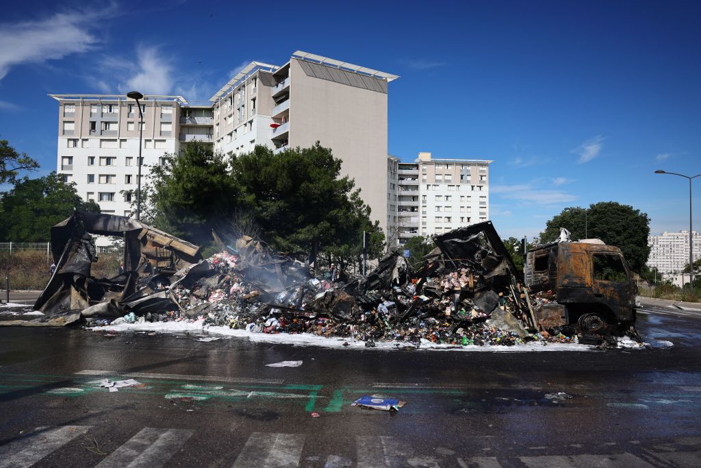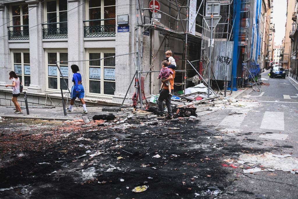 7月1日,法国东南部里昂街头的烧毁碎片。来源:法新社