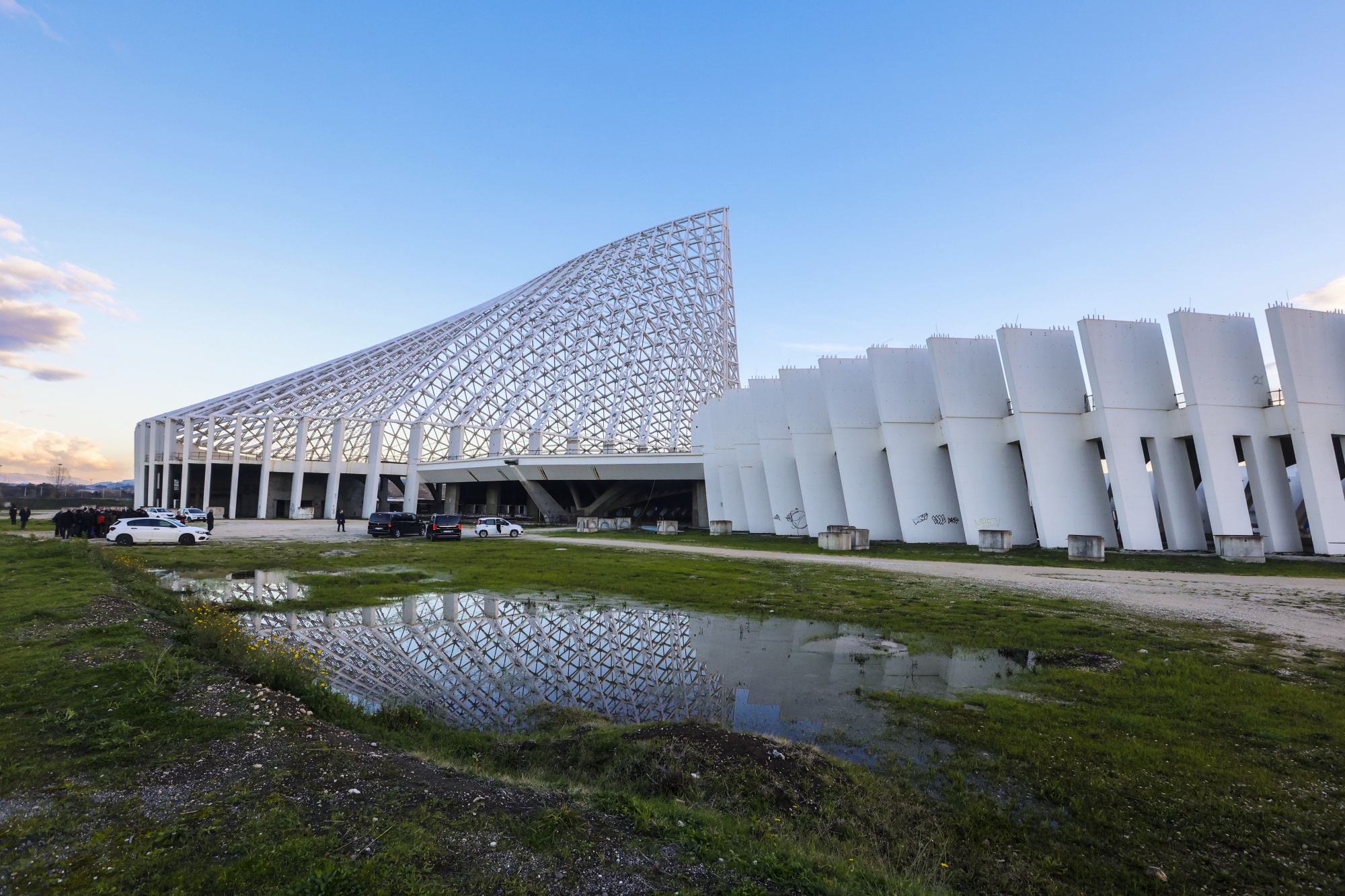 甚至国际商业博览会潜在场地的选择也源自于希望在物理上扭转几十年的衰落:托尔维加塔地区,那里有一座由建筑师圣地亚哥·卡拉特拉瓦设计的未来主义建筑群,被称为“Le Vele”,如今正慢慢腐烂,最初是为了2009年的游泳世界锦标赛而委托设计的。