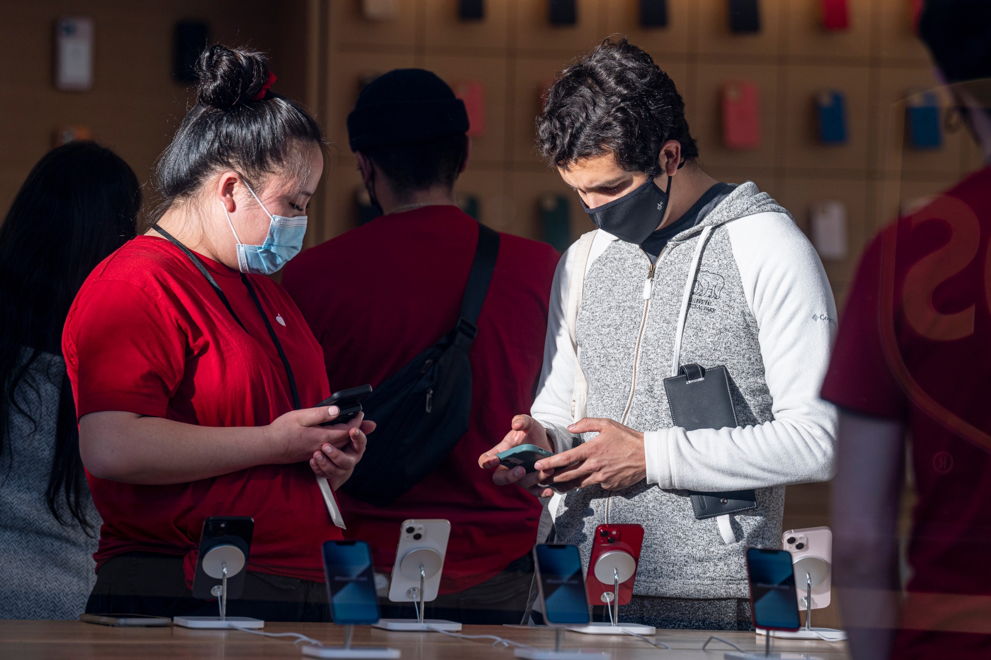 苹果零售员工在移动销售iPhone上接受付款。摄影师:大卫·保罗·莫里斯/彭博社**苹果商店计划完全转向触控支付方式,放弃“Isaac”销售点系统。**苹果商店已经使用iPhone(之前是iPod touch)放在一个带有信用卡阅读器的外壳内进行付款已经超过十年。几年前,苹果将其支付系统核心设备转移到了iPhone Xs和iPhone XSs。现在,公司准备将其移动终端(内部称为Isaac)转移到iPhone 14。