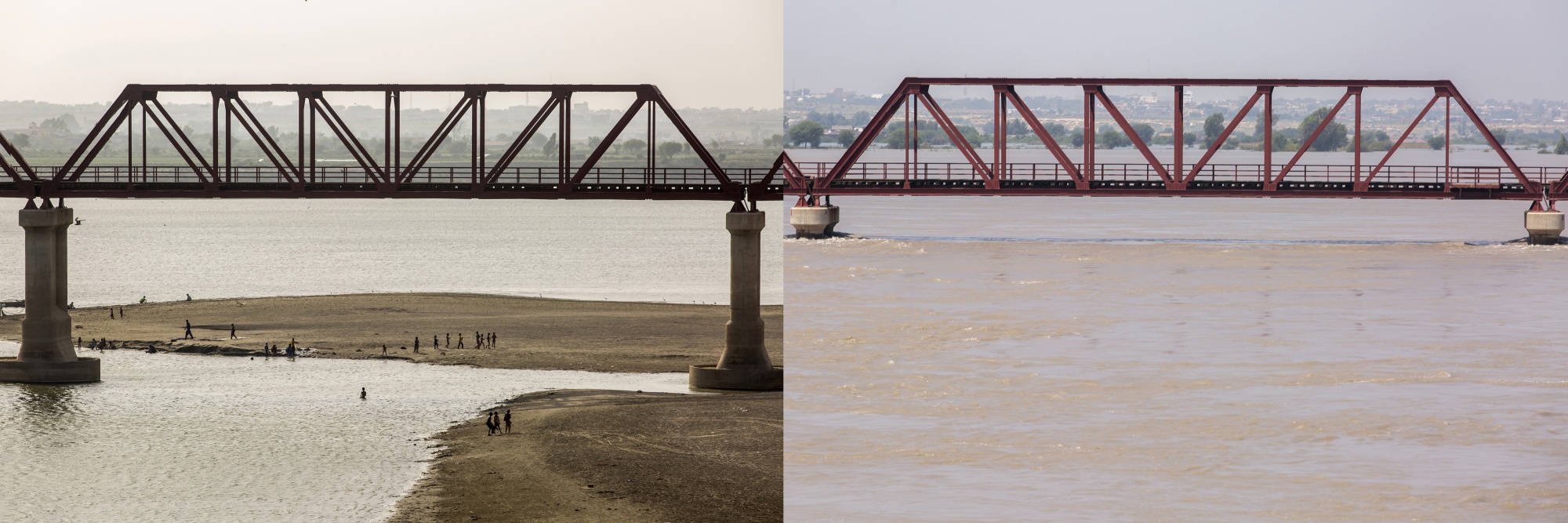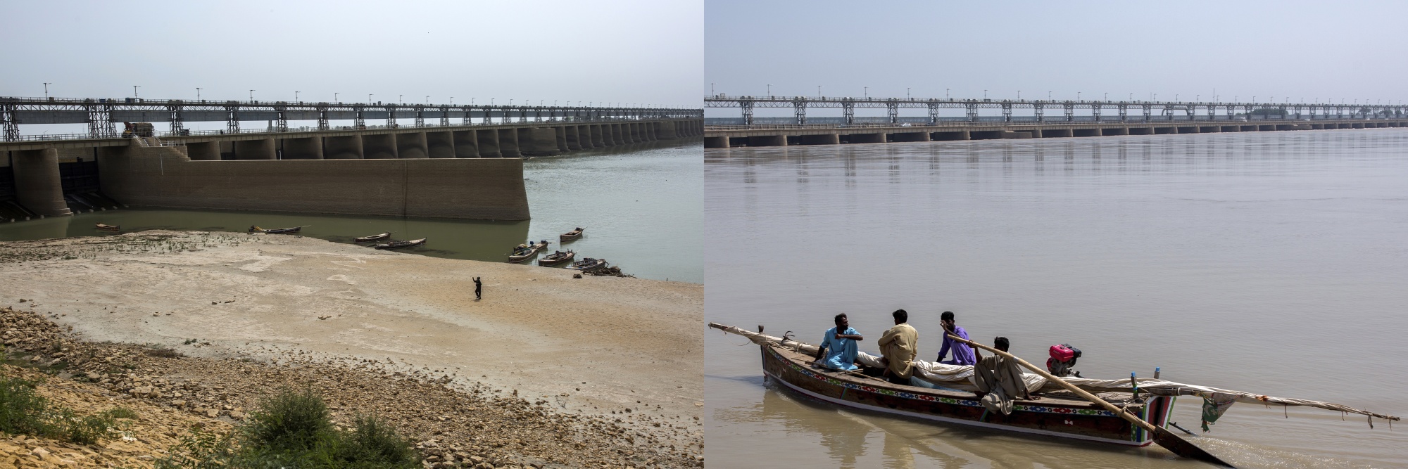 在靠近村庄的詹姆苏鲁和海德拉巴之间,印度河上坐落着科特里大坝。在洪水期间,如右图所示,数千人被迫撤离。摄影师:阿西姆·哈菲兹
