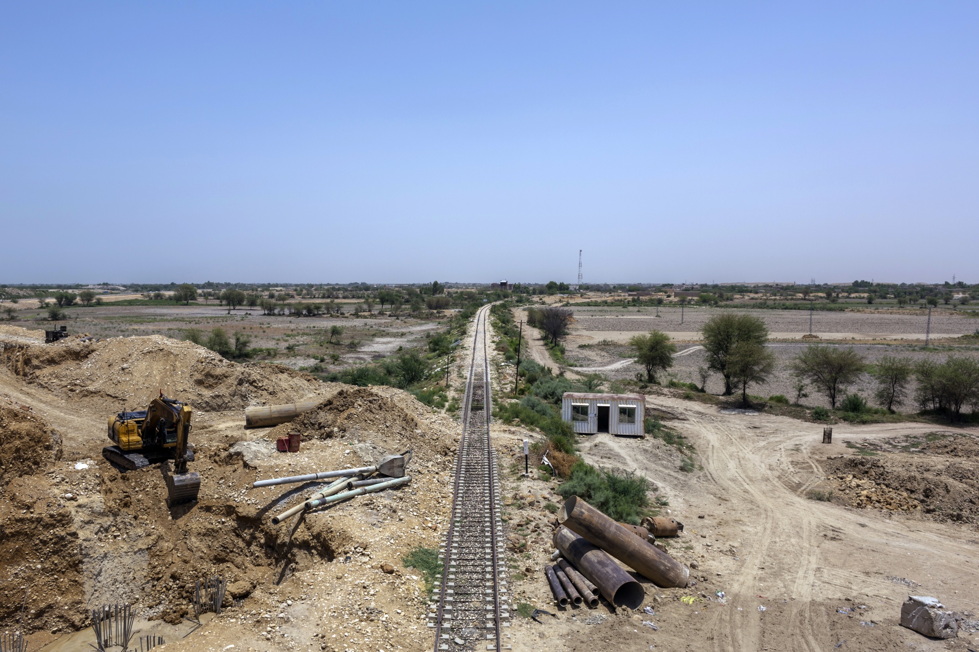 重建工作进展缓慢。截至6月1日,在信德省贾姆苏罗地区的一条铁路线旁正在进行施工。摄影师:Asim Hafeez/Bloomberg