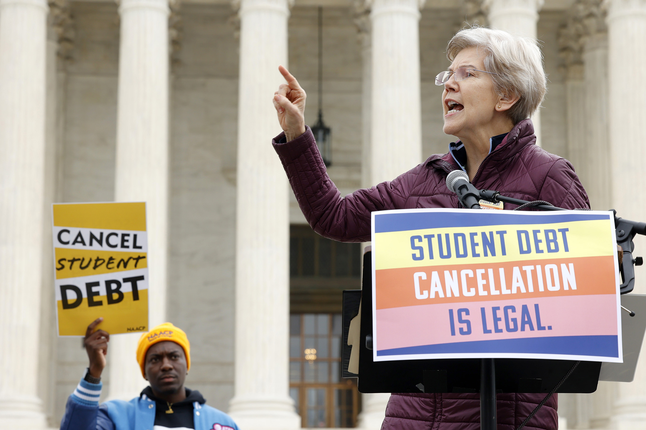 伊丽莎白·沃伦参议员在二月份在华盛顿举行的人民取消学生债务集会上。摄影师:Jemal Countess/Getty Images North America当自由派人士,如参议员伊丽莎白·沃伦及其盟友们开始大力推动大规模贷款宽免时,他们指出了1965年《高等教育法》,他们声称该法赋予教育部长根据“和解和妥协”条款取消所有联邦学生贷款的权力。即使许多民主党人也持怀疑态度。“人们认为美国总统有权宽免债务,”众议院议长南希·佩洛西在2021年表示。“他没有。”