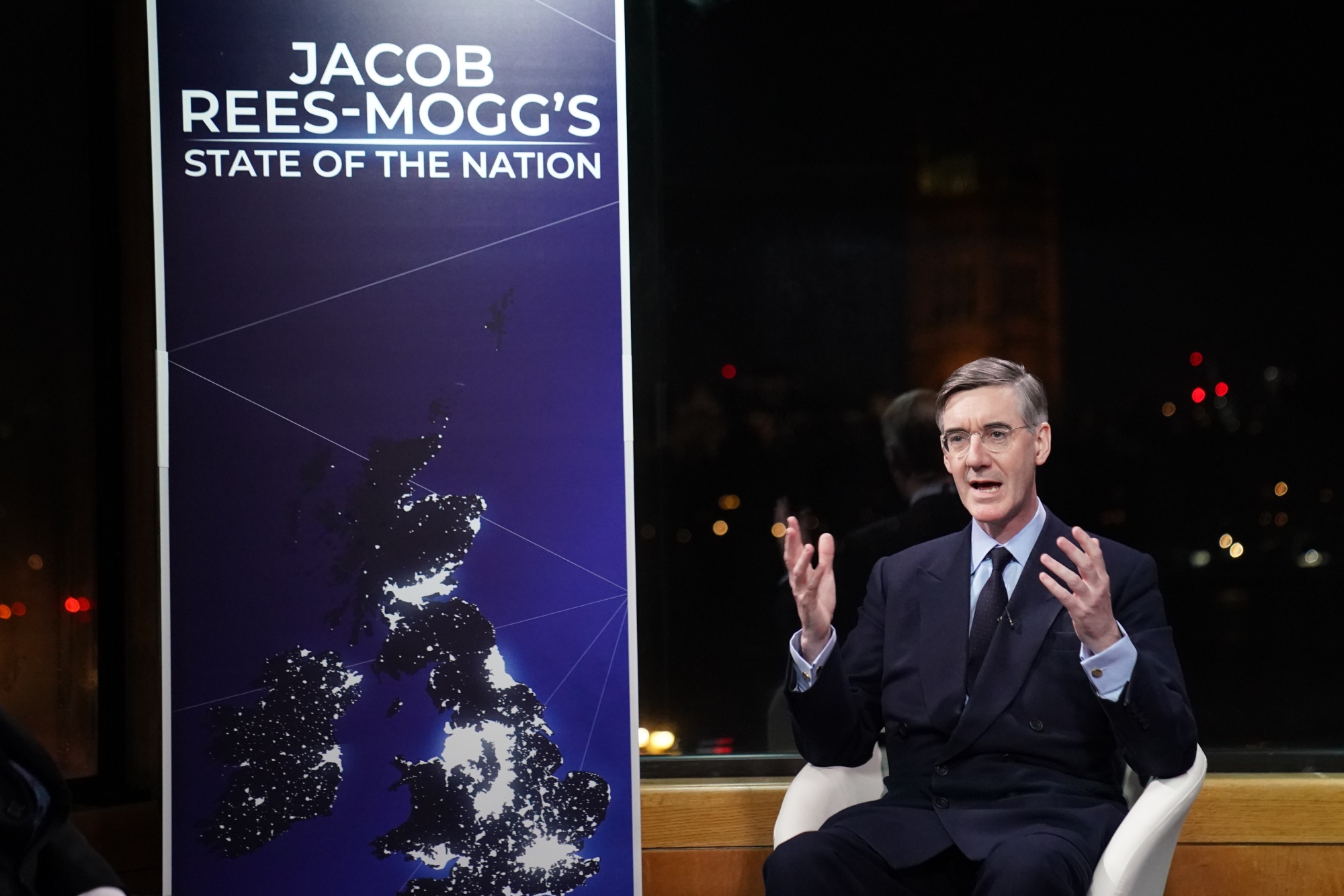 雅各布·里斯-莫格(Jacob Rees-Mogg)在GB News工作室,摄于二月。