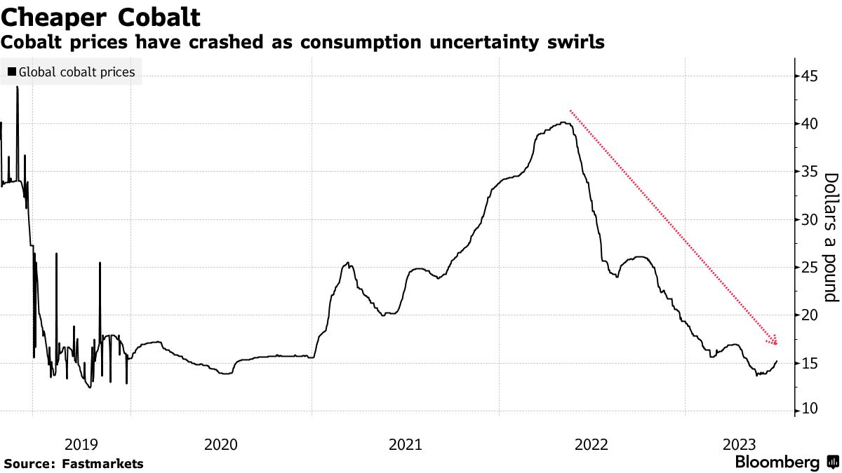中国计划在钴价格下跌后增加国家钴储备-彭博社