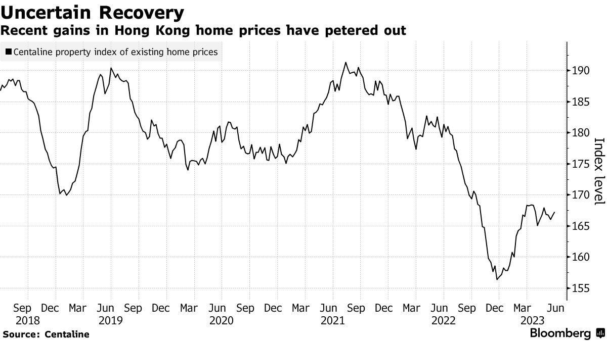 住房市场的表现比办公楼部门好。边境重新开放提振了情绪,因为人们预期中国大陆人会在这座城市购买房产。根据中原地产机构的数据,今年迄今为止,房价上涨了6.3%,但距离去年16%的暴跌还有很大差距。