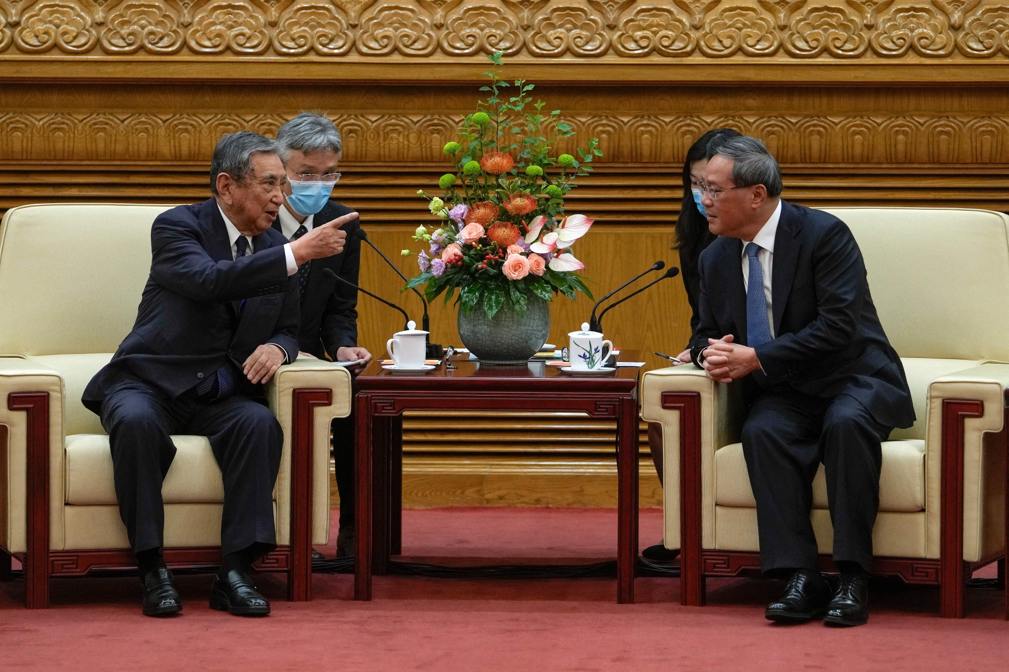 小泉洋平(Yohei Kono)左,与李强在7月5日北京的会议上。摄影师:安迪·王/法新社/盖蒂图片社中国总理李强表示,东京即将实施的对尖端芯片设备的出口管制将损害全球经济,这是一位日本前高级官员透露的。