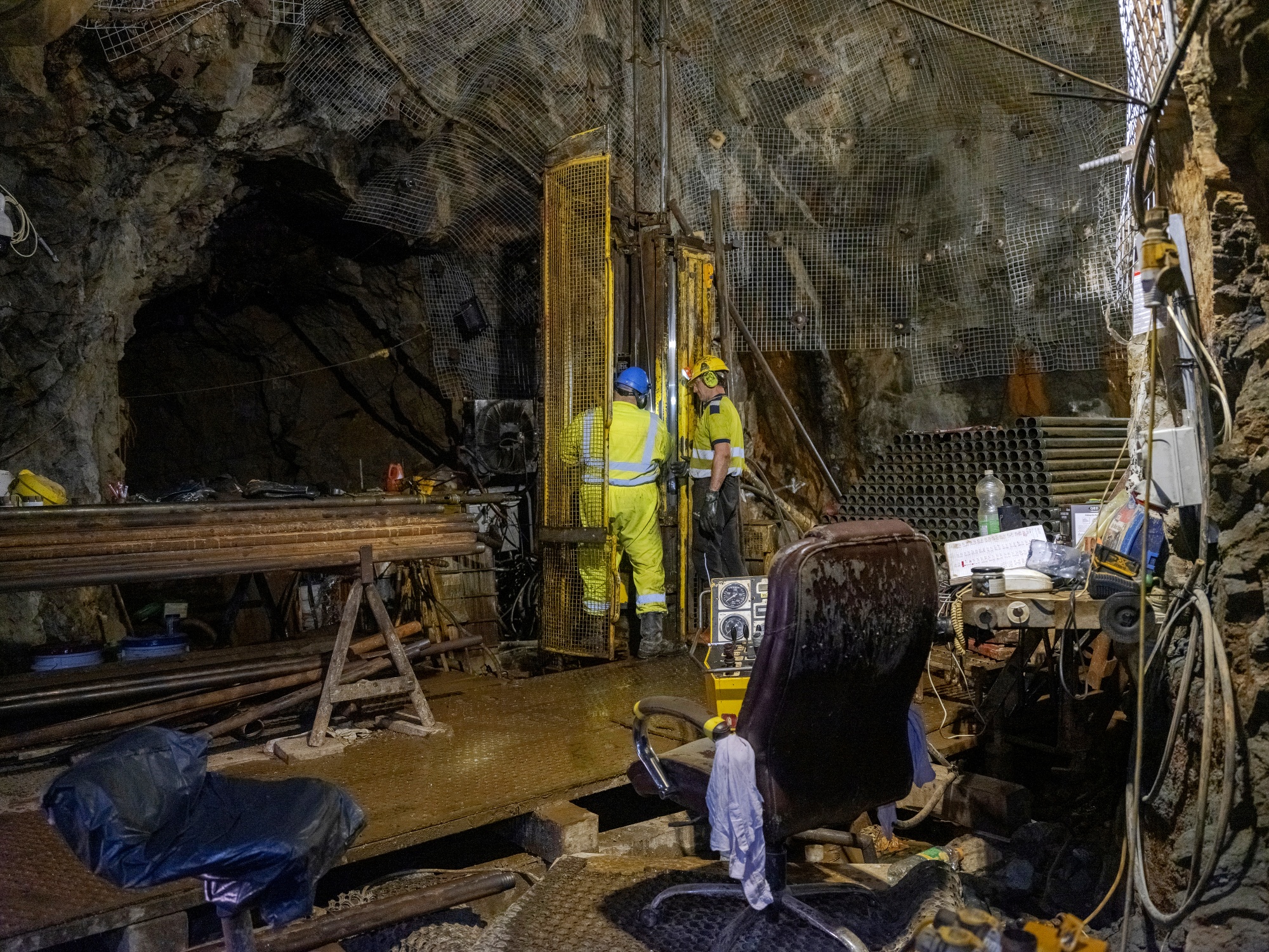 在隧道尽头,一个明亮的洞穴展现出来,两名男子正在操作一台钻机深深地钻探以评估矿石的规模。南克罗夫蒂的锡矿石品位非常高 —— 根据在康沃尔进行本科地质测绘项目的地质学家威廉斯所说,是世界级的矿床。但在进行任何采矿之前,必须对工作区进行“排水”,或者抽水。
