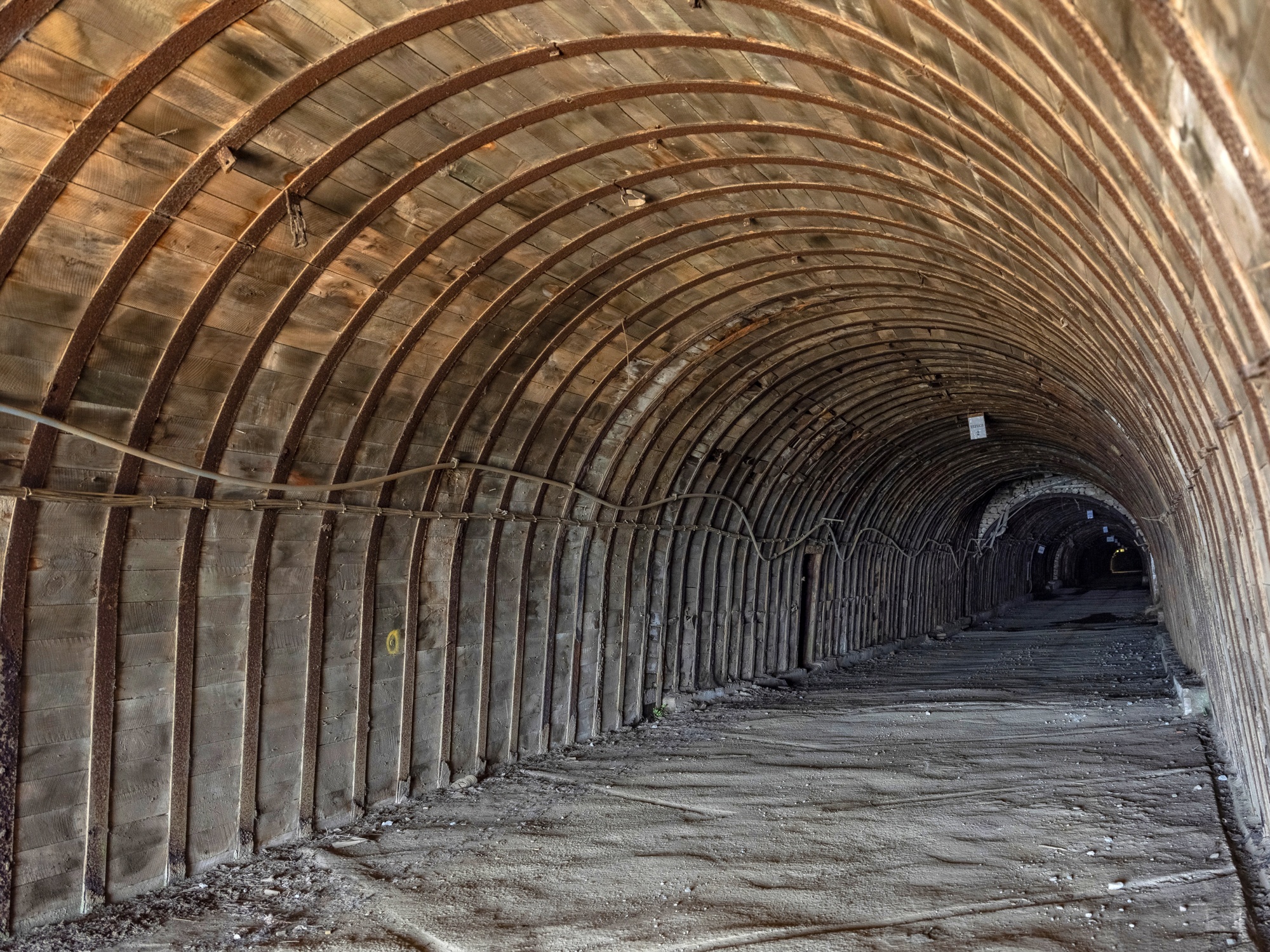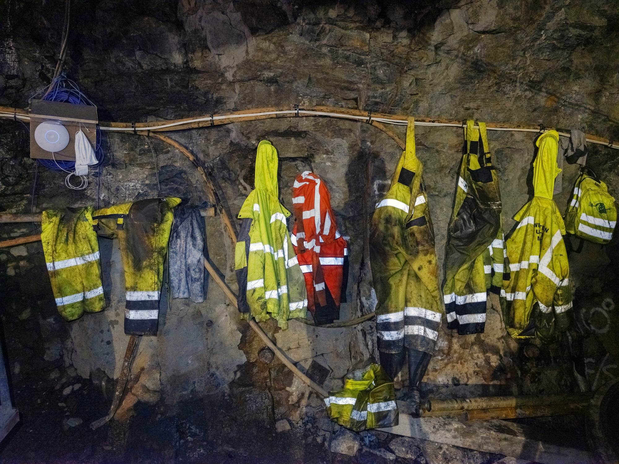 水流沿着隧道墙壁滴落,嘈杂地聚集在黑色的泥泞水坑中,使得即使对于不习惯戴着带头灯的安全帽、防护工装、带有钢头橡胶靴并携带“自救器”呼吸装置的人来说,行走变得更加笨拙。