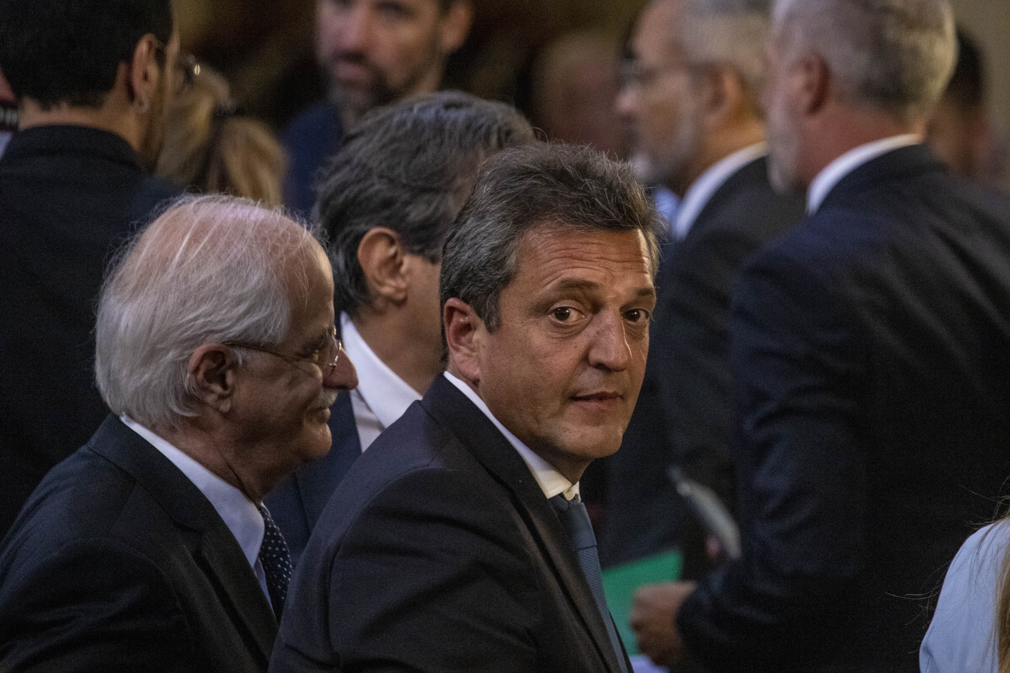 阿根廷经济部长塞尔吉奥·马萨在2023年1月23日在布宜诺斯艾利斯的卡萨罗萨达举行新闻发布会。摄影师:安妮塔·普查德·塞拉/彭博社阿根廷经济部长塞尔吉奥·马萨既在竞选总统,又在重新谈判与国际货币基金组织的440亿美元协议。