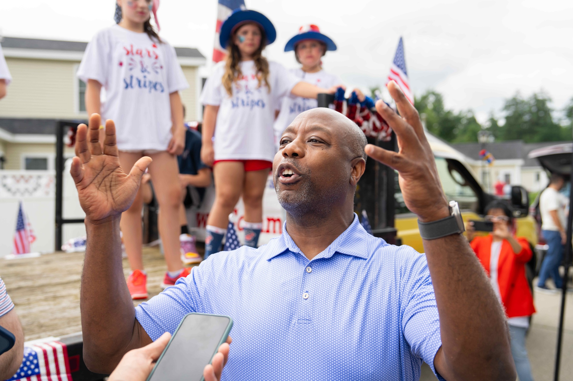 蒂姆·斯科特参加了7月4日在新罕布什尔州梅里马克举行的独立日游行。