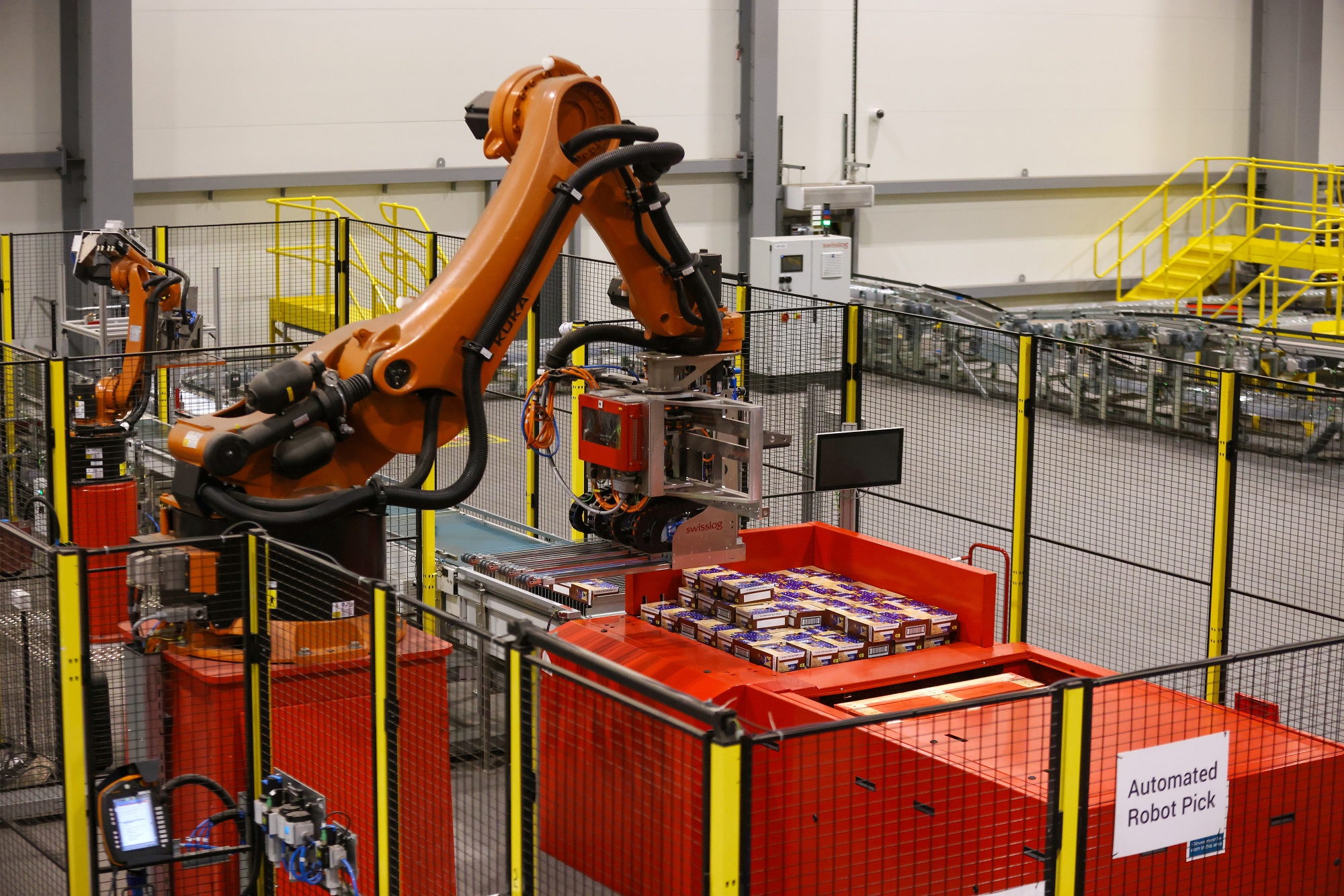 一个机器人正在移动雀巢公司制造的产品。