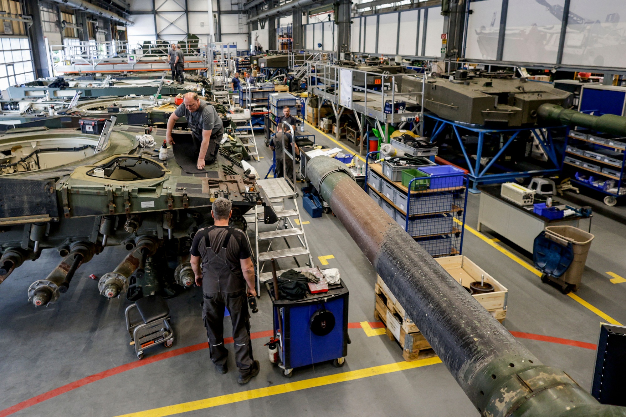 在德国奥格斯堡的 Renk AG 工厂,组装了一台豹2型坦克的传动装置。摄影师:Michaela Rehle/Bloomberg在 Renk AG,这家为包括许多北约军队使用的豹2型坦克制造传动装置的公司,如果订单增加,高管们可能很快面临劳动力短缺问题,因为他们已经在努力填补至少100个职位。该公司首席执行官苏珊娜·维根德在德国奥格斯堡工厂的装配线上说:“这些工人之间存在竞争。你必须提供好的、有吸引力的工作 —— 这只是部分与薪水有关。”