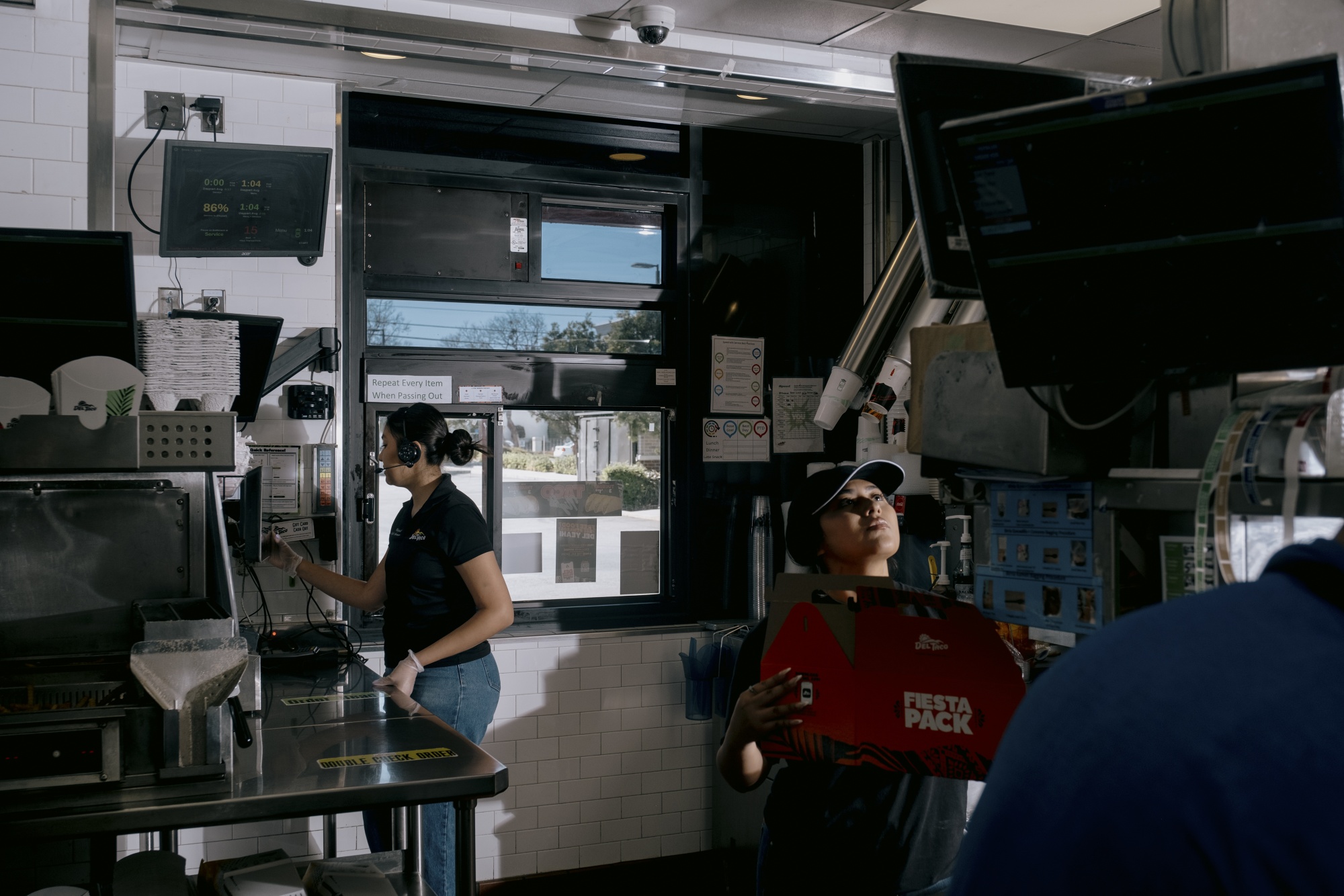 Del Taco在柜台后面指派了一名人类工作人员来倾听所有AI订单,并在必要时进行干预。摄影师:马克·亚伯森/彭博社Presto“专注于自动化订单”,古普塔说。“事实是,通过车道的90多%的人实际上只是进来,他们正在下订单。”