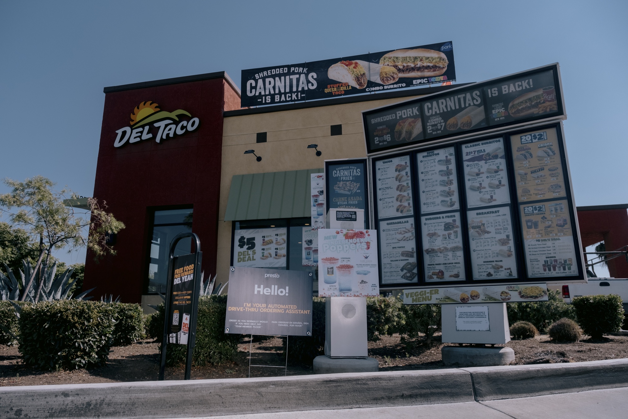 当我驶入德尔塔科(Del Taco)驱动通道时,一个模糊的机器声音向我打招呼:“嗨。今天我们可以为您做些什么新鲜的?”