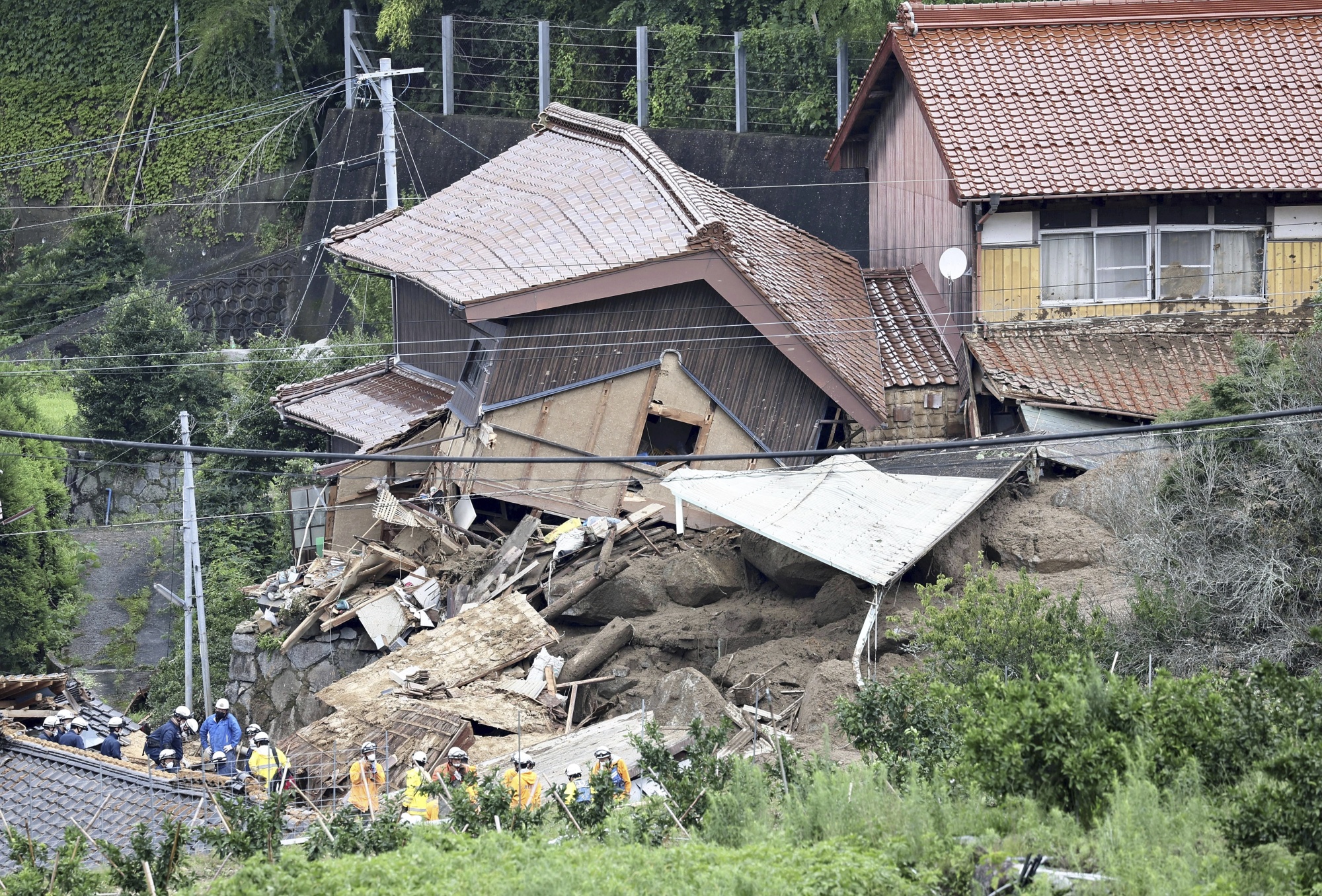 在福冈的久留米市,发生了一起泥石流,冲击了七栋房屋,埋葬了21人。其中六人自行逃生。救援人员成功营救出九人,正在努力营救另外五人,但还有一人失踪,根据灾害机构的说法。