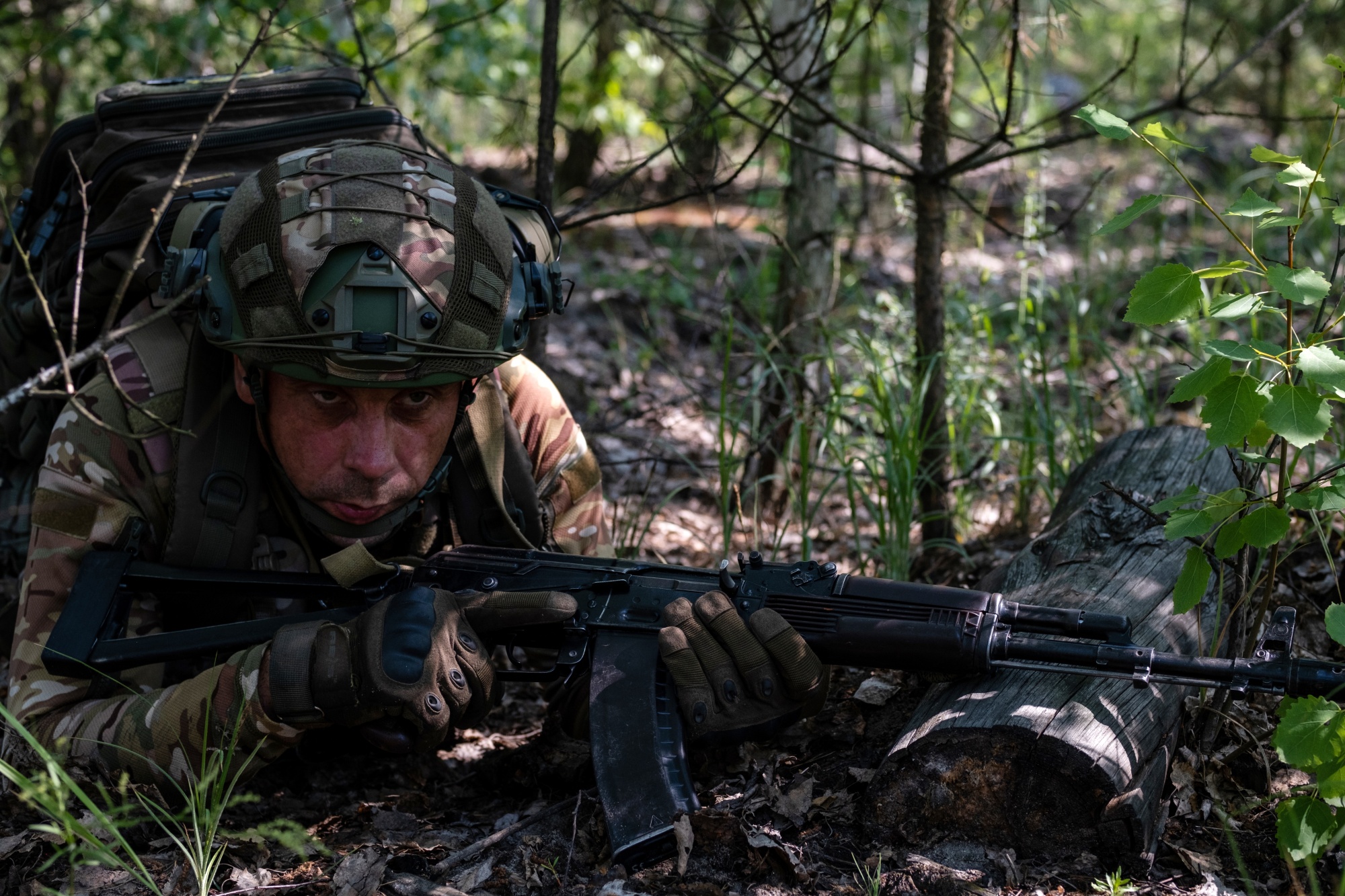 在乌克兰基辅附近进行训练的布列维国民警卫旅成员,时间为6月22日。