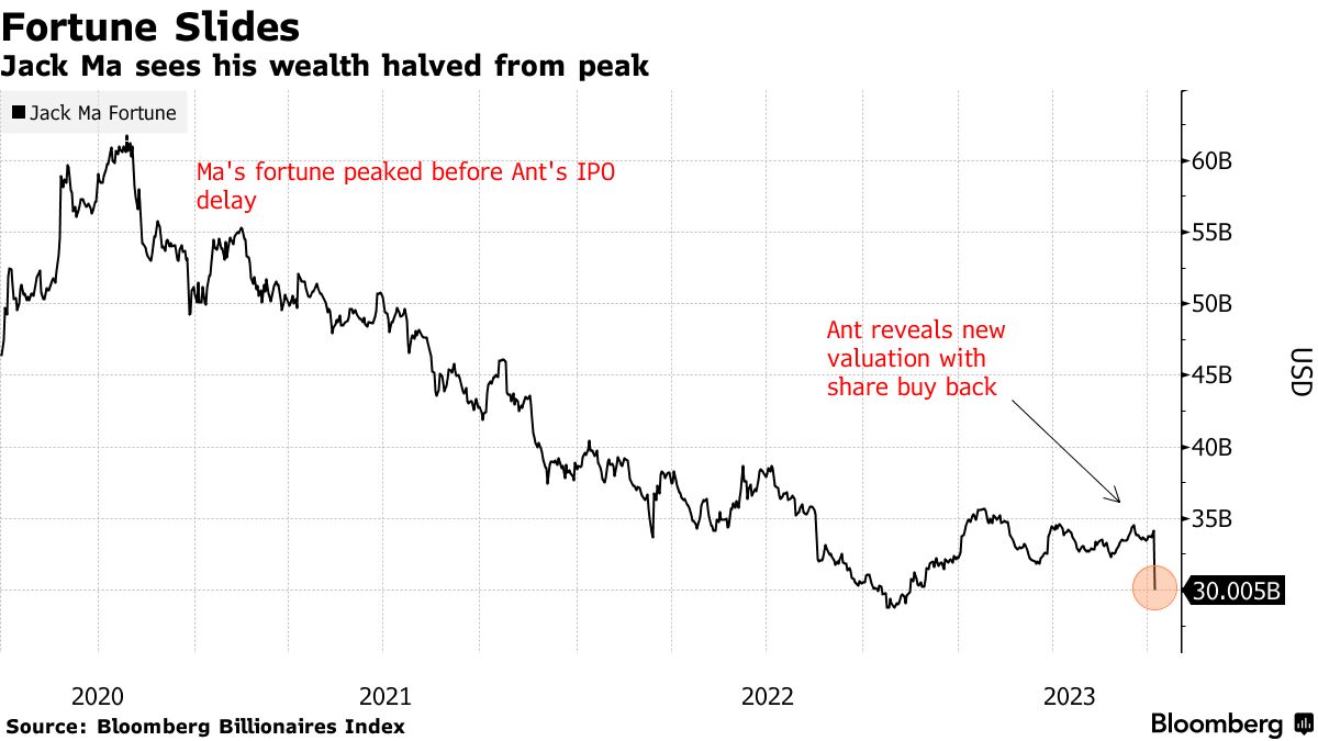 马云财富减少41亿美元,蚂蚁集团估值大幅下调 - 彭博社