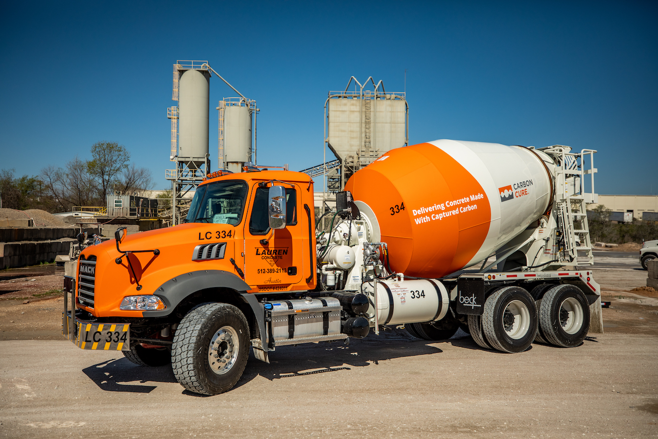 在得克萨斯州奥斯汀的一辆CarbonCure混凝土卡车。