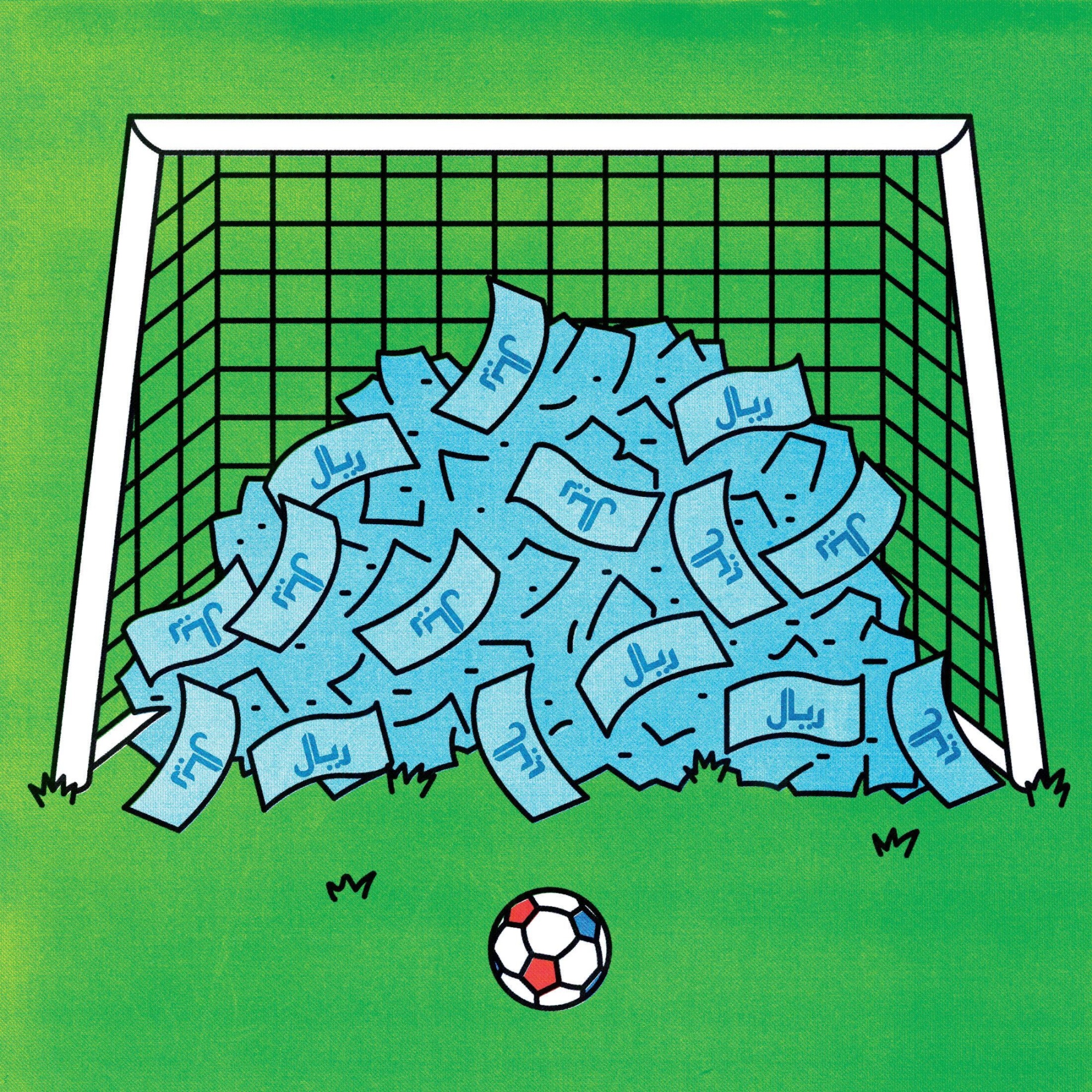 插图:George Wylesol为彭博商业周刊绘制在过去几年里涌入欧洲足球的美国私募股权公司,突然之间可能面临沙特阿拉伯的问题。