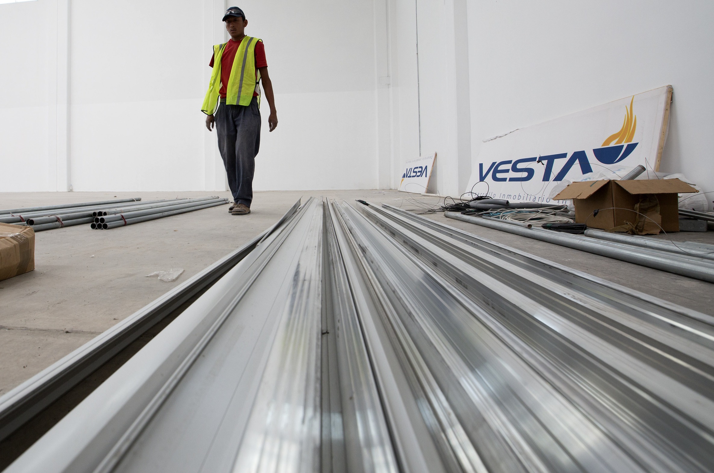 一名工人在墨西哥克雷塔罗的Corp. Inmobiliaria Vesta SAB的航空航天园区正在建设中的仓库内行走,摄于2013年。摄影师:Susana Gonzalez/Bloomberg工业房地产开发商Corporacion Inmobiliaria Vesta SAB首席执行官表示,该公司在美国上市后正在加快其开发管道,他在周一接受采访时表示。