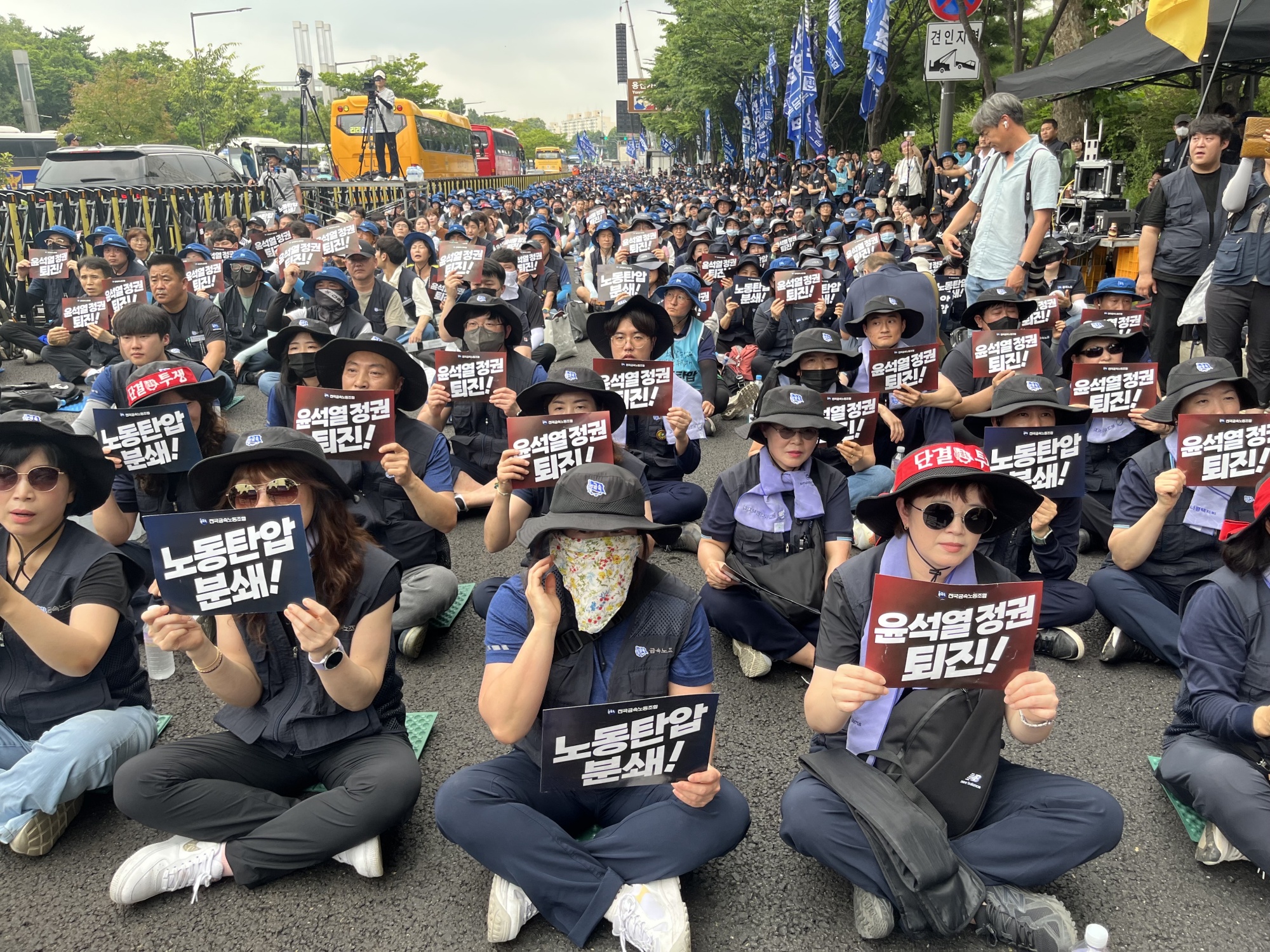 这些工人是韩国金属工人联盟的一部分,该联盟呼吁其18万名会员抗议尹锡悦政府的劳工政策。政府一直在推动工会改革,并誓言对任何扰乱公共秩序的非法示威做出强硬回应。