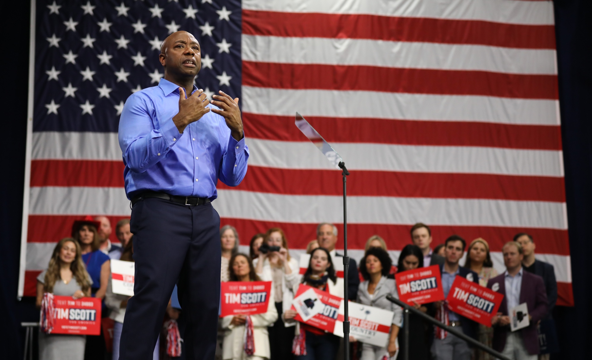 五月份竞选集会上的南卡罗来纳州参议员蒂姆·斯科特。