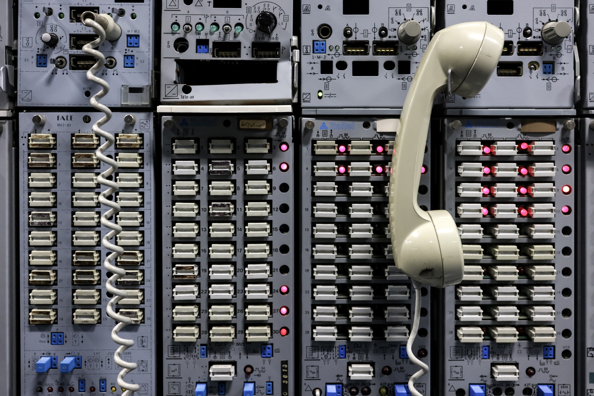 意大利罗马的电信意大利SpA电话交换机内的电话听筒。